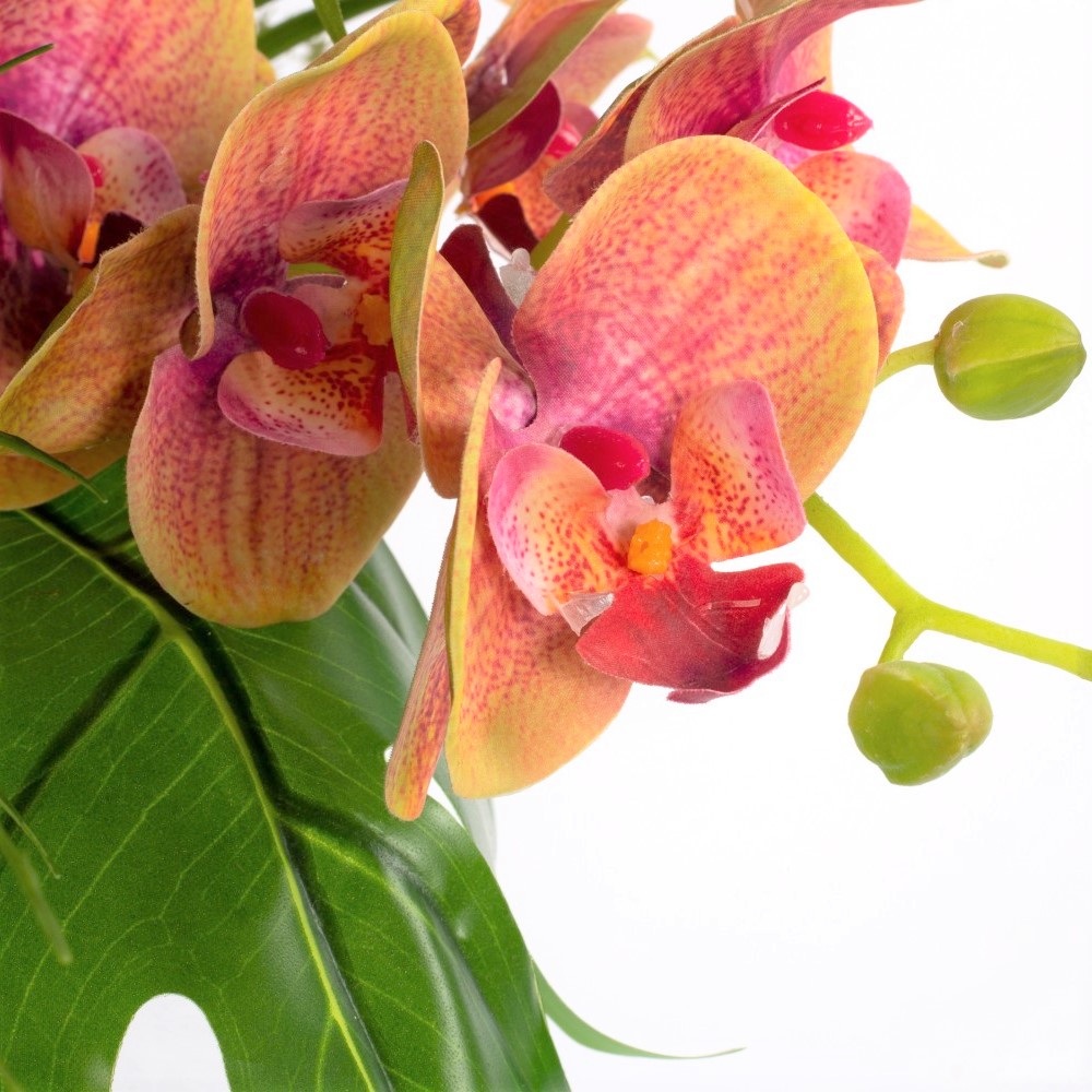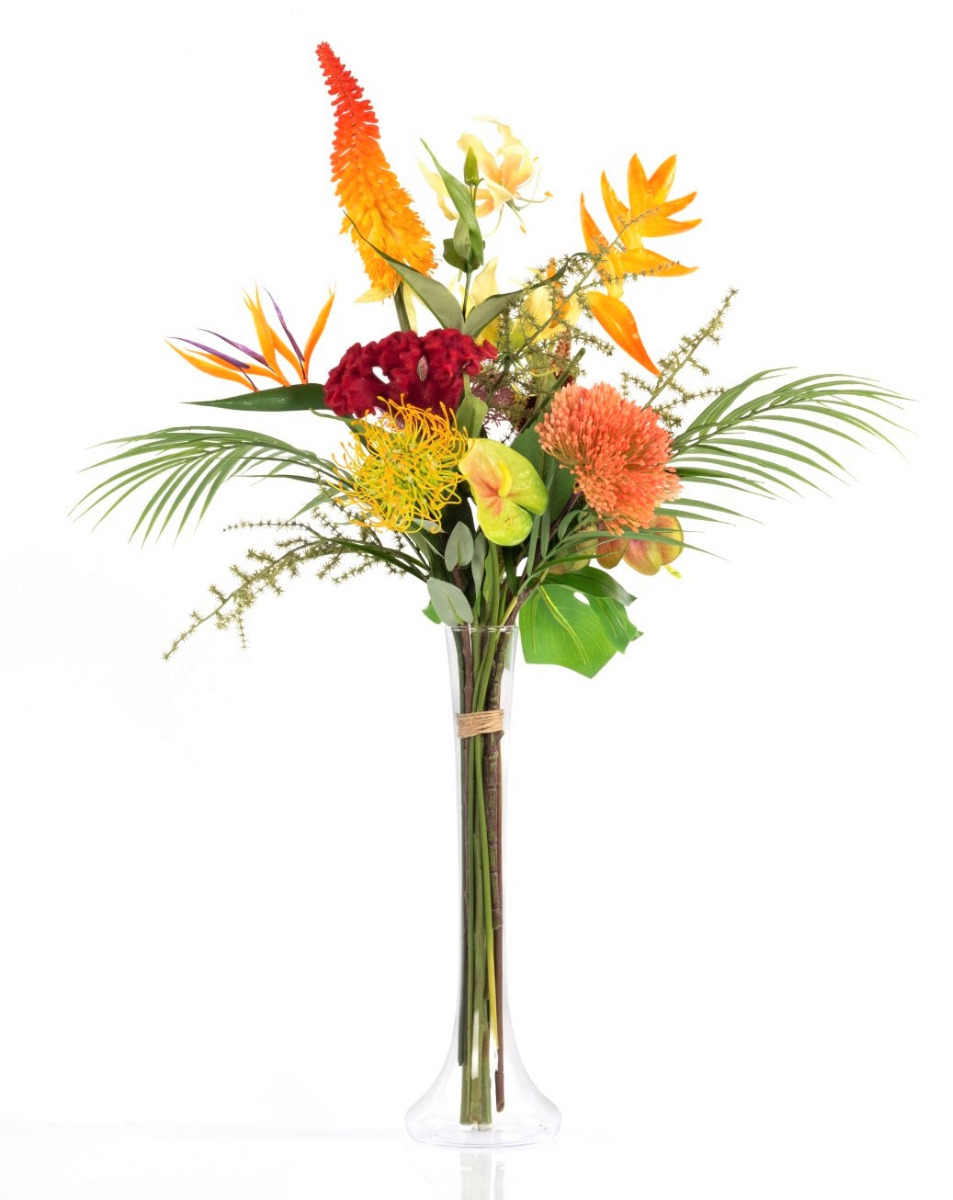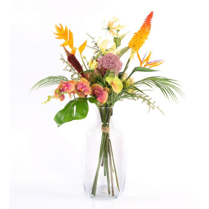 Plastik Paradiesstrauß OHANA, Orchidee, Helikonie, bunt, 85cm, Ø50cm