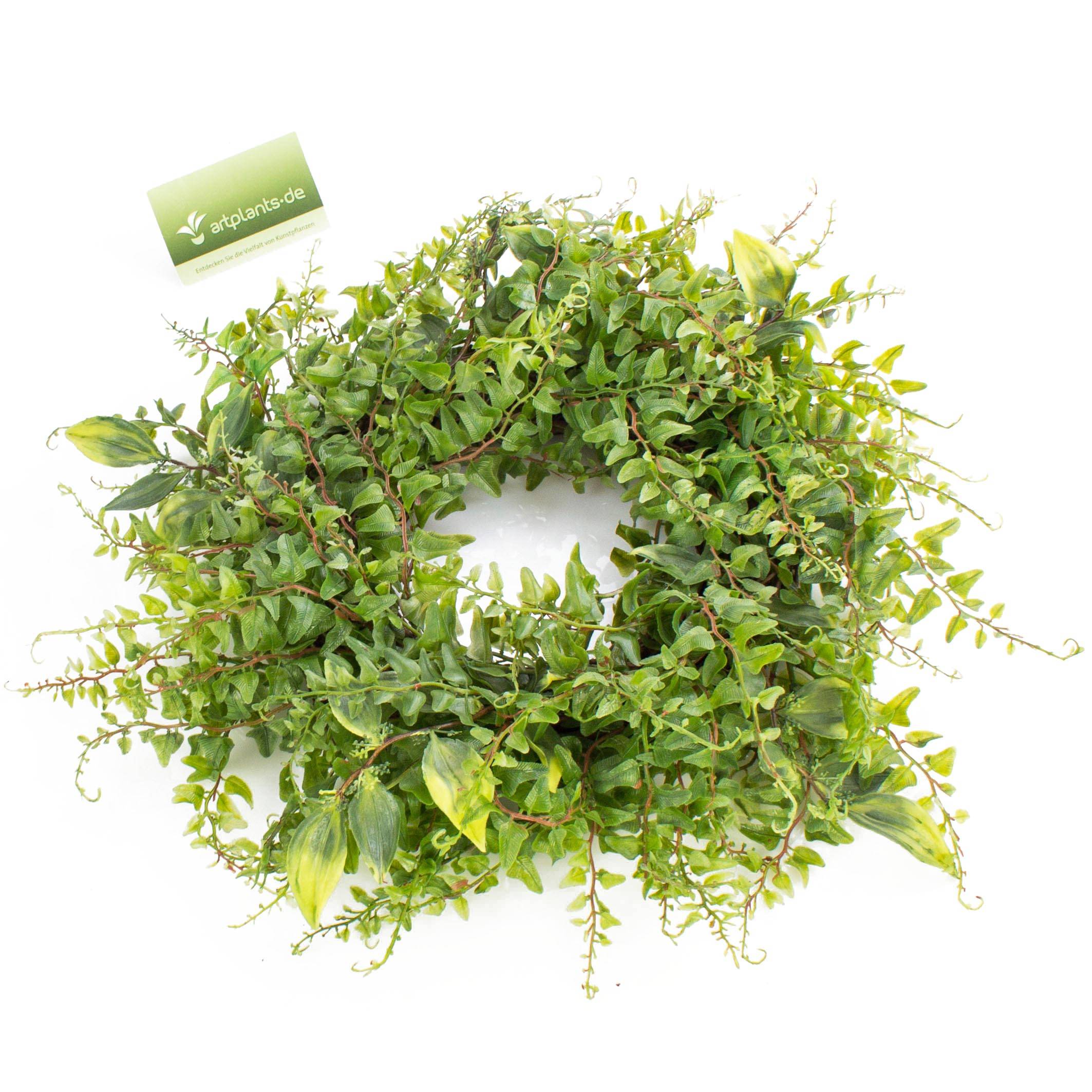 Künstlicher sortenreiner Kranz FRIEDRICH von artplants mit einem Durchmesser von ca. 40 cm in Farbe grün. Der Kunst Kranz eignet sich für die Dekoration von Türen, Tischen und Wänden.