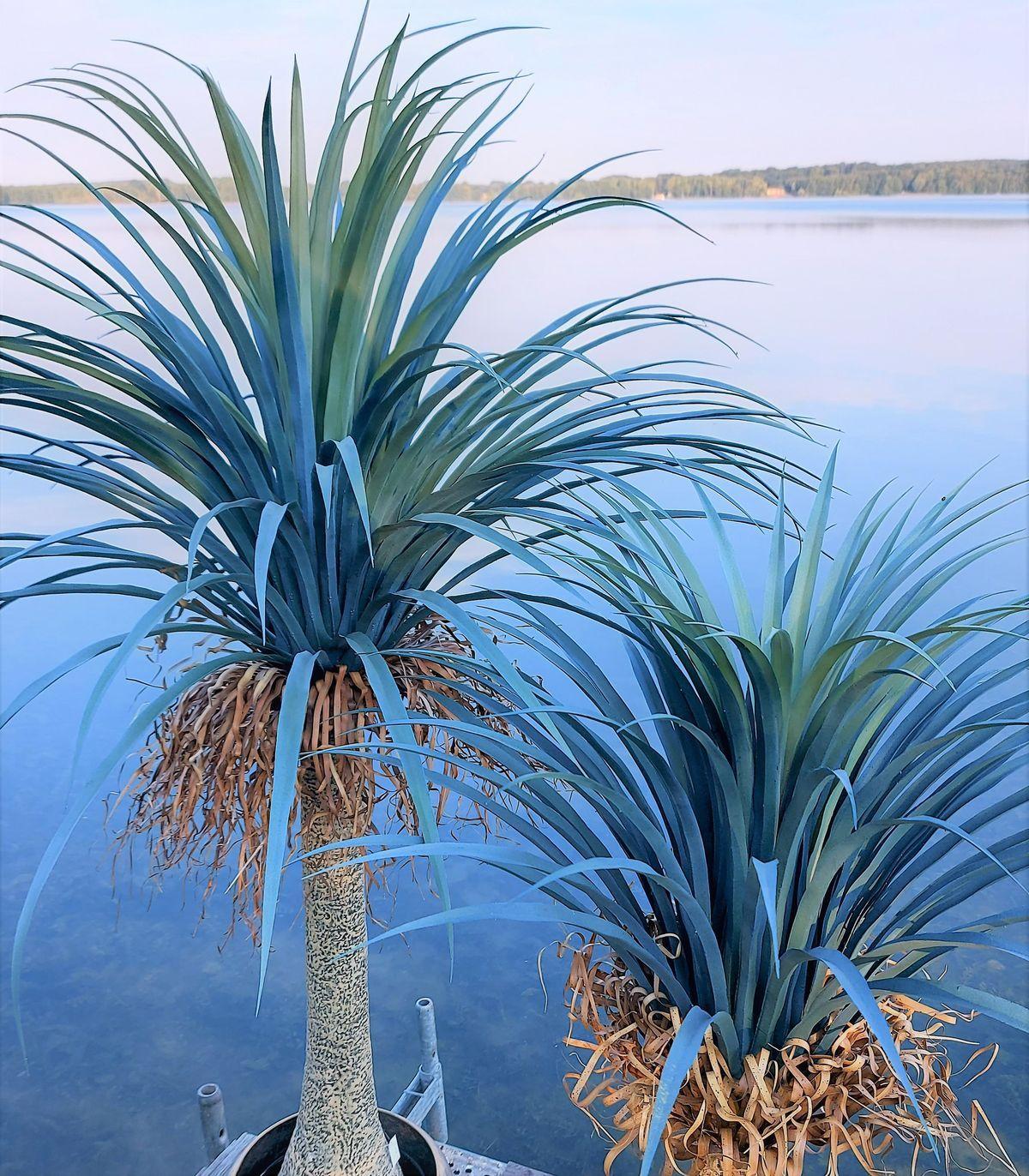- Die langen schmalen Blätter sind auf einem langen kräftigen Stamm befestigt, und sind umringt von verwelkten Blättern
