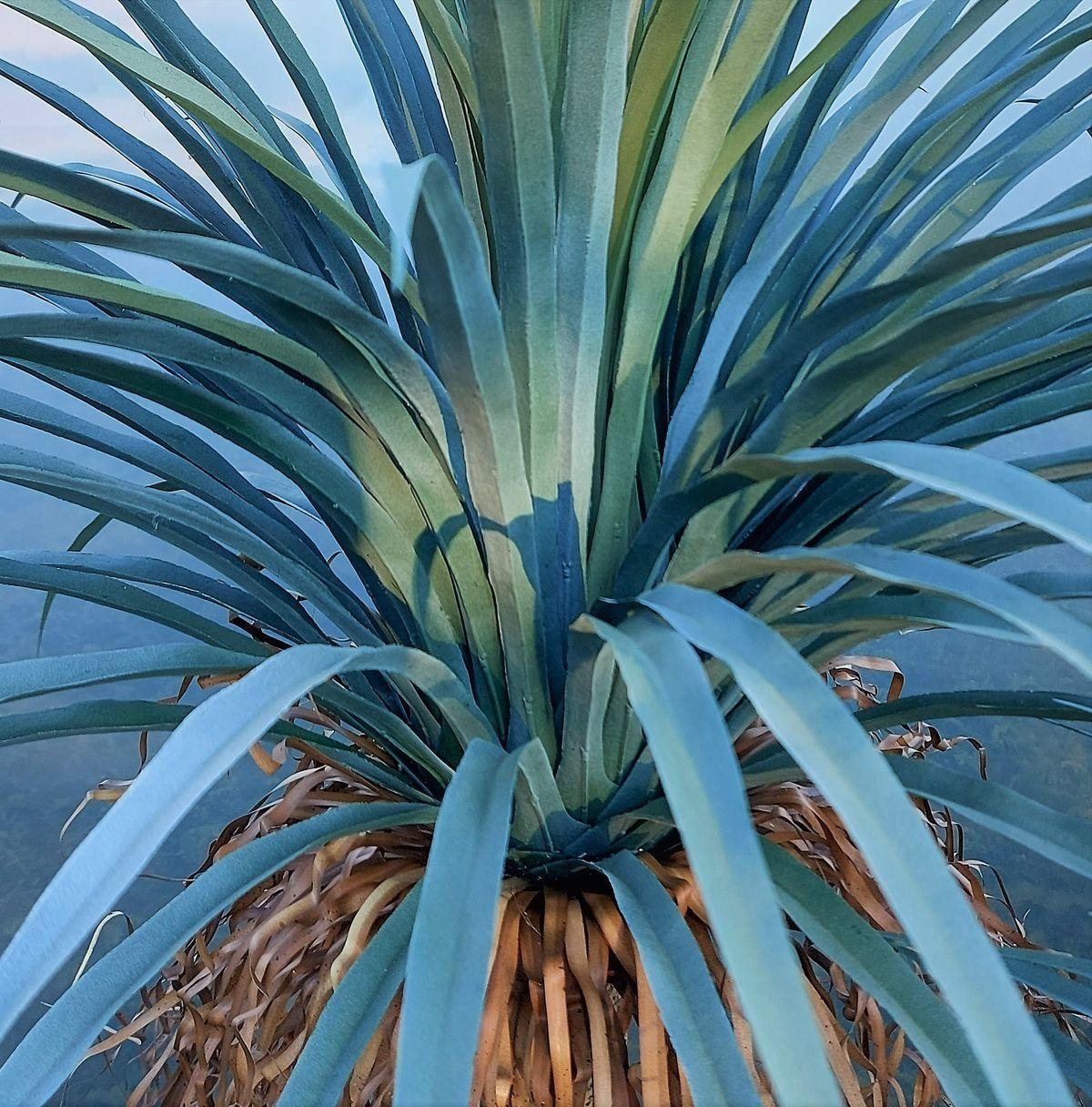 - Die langen schmalen Blätter sind auf einem langen kräftigen Stamm befestigt, und sind umringt von verwelkten Blättern