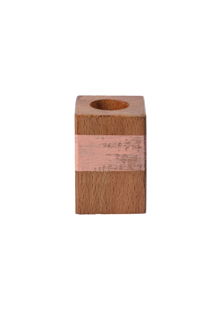 Rechteckiger Holzleuchter KARLINA für Stabkerzen bis ca. Ø2,5cm, natur-lachs, 4x4x6cm