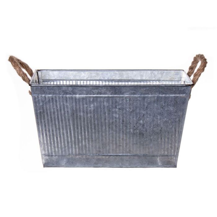 Rechteckiger Pflanzkasten BIMETO mit Griffen, Rillen, Zink, silber, 24x14x13cm