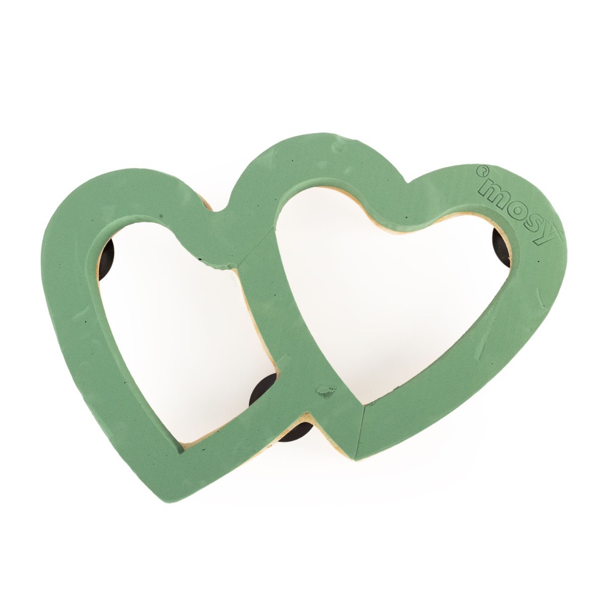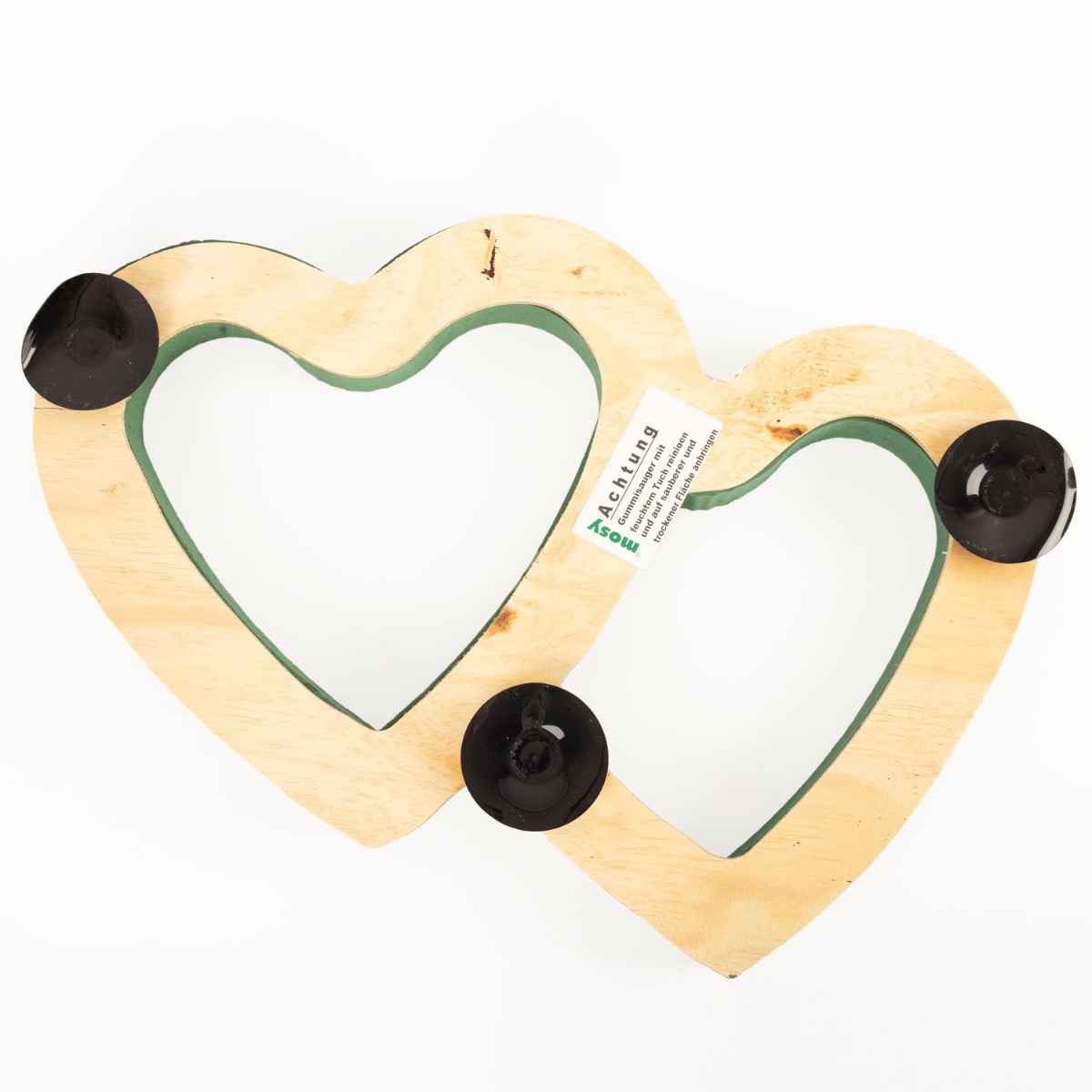 ®mosy Ökodur Steckschaum Auto Doppel Herze SKENADA, Hochzeitsdeko, mit Saugnapf, Naturholz-Unterlage, grün, 43x58x5cm