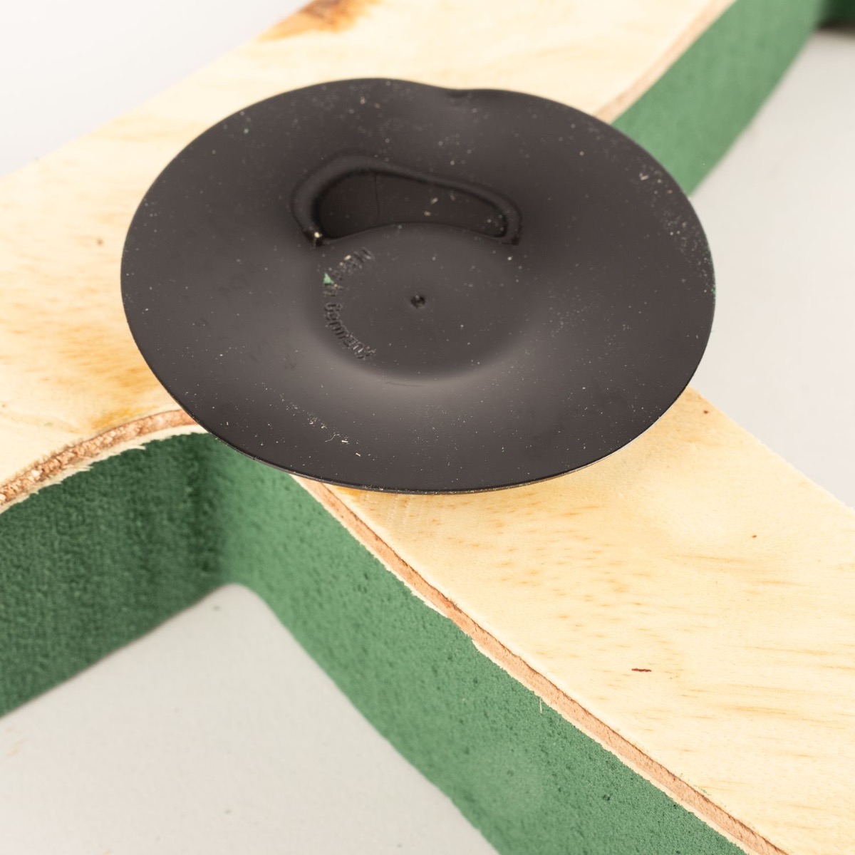 - Auf umweltfreundlicher Naturholz-Unterlage mit drei Saugnäpfen zur Fixierung auf z.B. einer Motorhaube