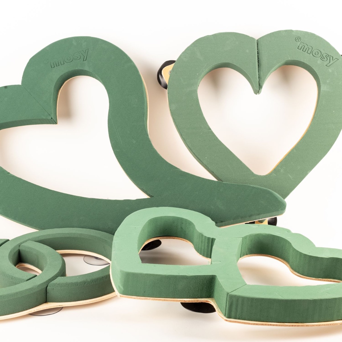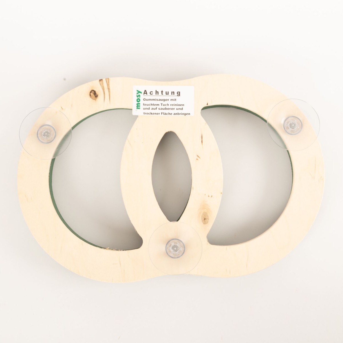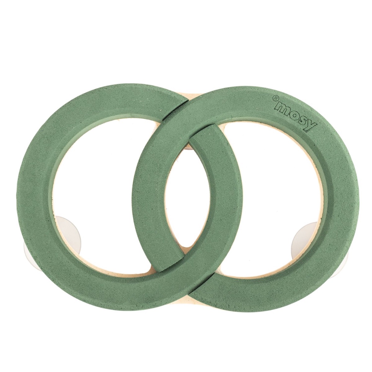 ®mosy Ökodur Steckschaum Auto Eheringe ARAKAWA, Hochzeitsdeko, mit Saugnapf, Naturholz-Unterlage, grün, 31x47x4cm