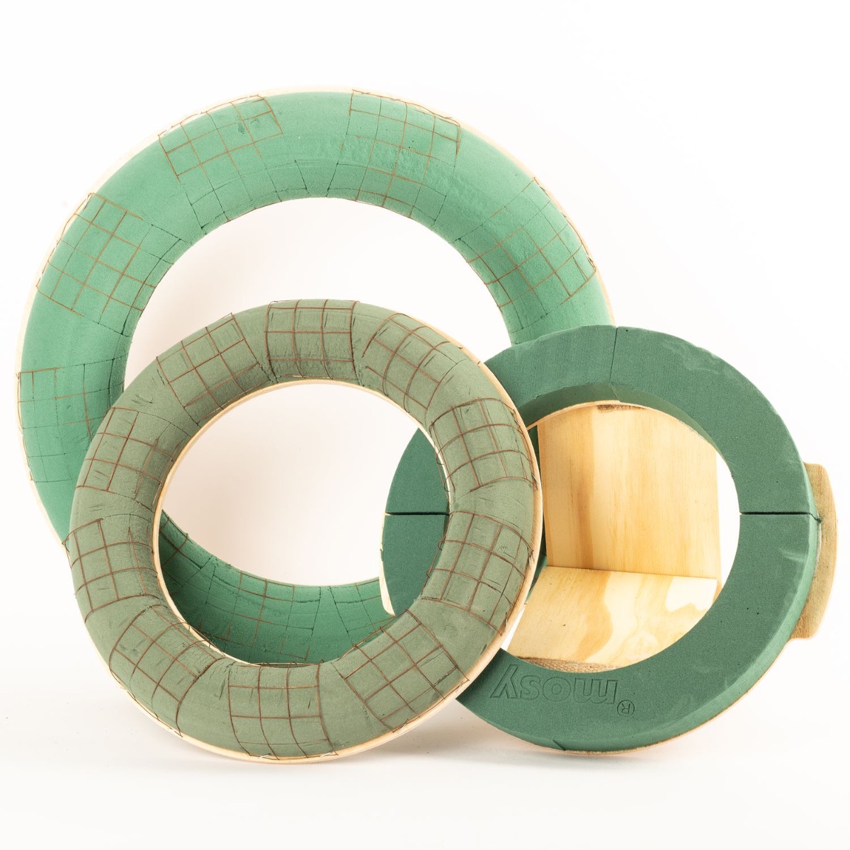 ®mosy Ökodur Steckschaum Ring CRAILO mit Drahtgitter, Naturholz-Unterlage, grün, 6cm, Ø55cm
