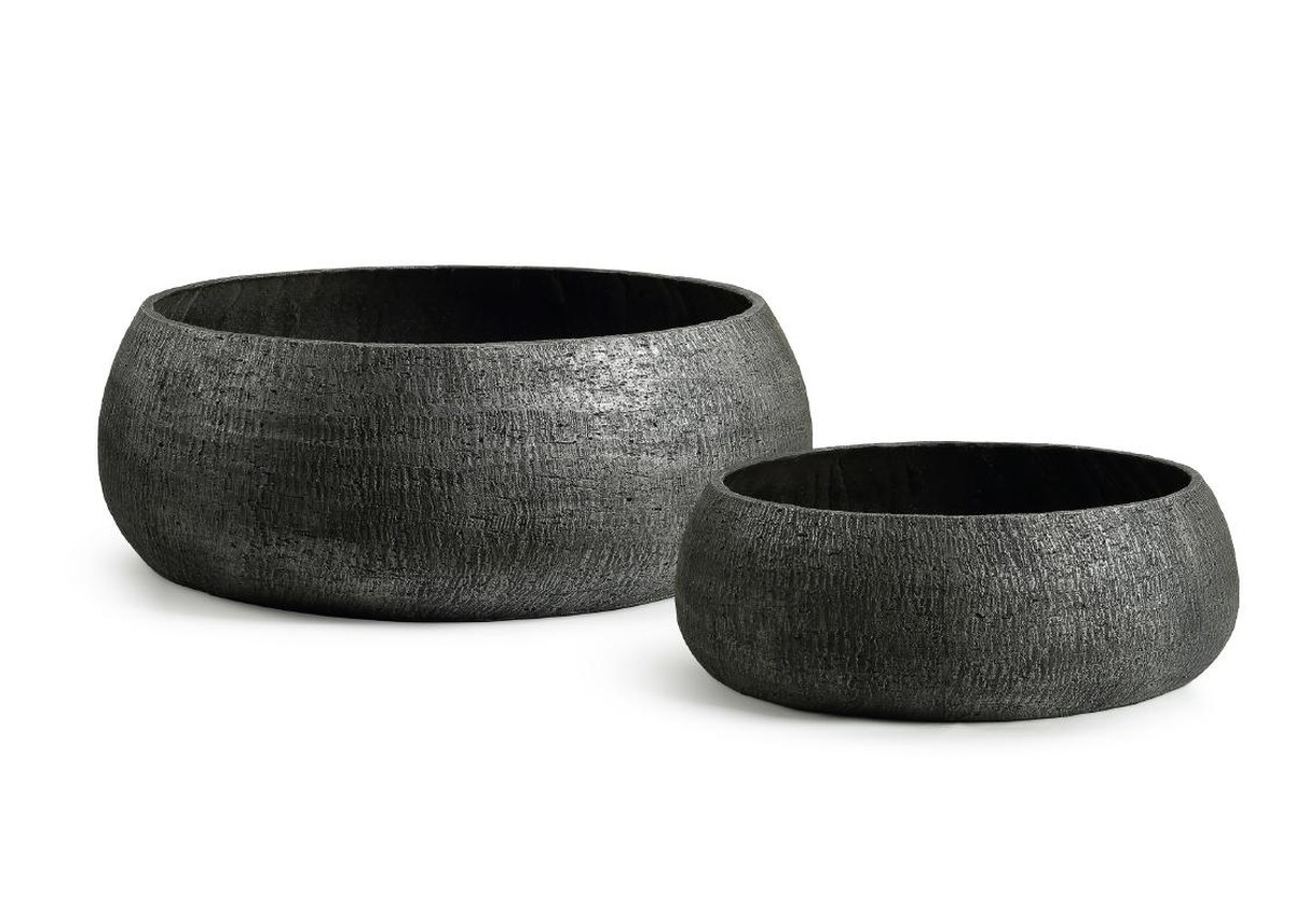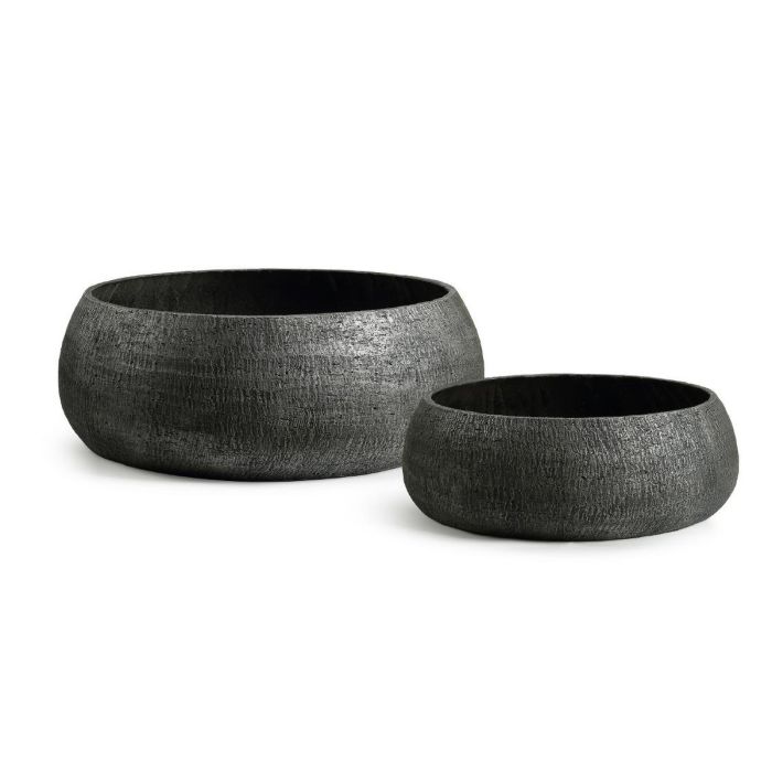 Runder Fibreclay Pflanzkübel AYKUT, 2 Stück, bauchig, schwarz-silber, 23,5-31cm, Ø71-91cm