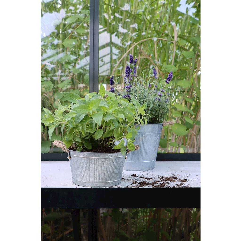 Runder Pflanzkasten BIMETO mit Griffen, Rillen, Zink, silber, 10,5cm, Ø19,5cm