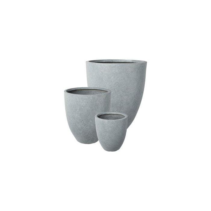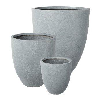 Runder Pflanzkübel KIRIMA, 3 Stück, Fiberglas, grau, 34x30cm, 42x36cm, 50x44cm