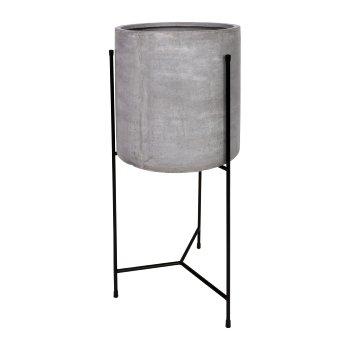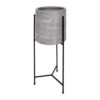 Runder Pflanzkübel NARUKO mit Metallständer, 2 Stück, Fiberglas, grau, 35x75cm, 45x82cm