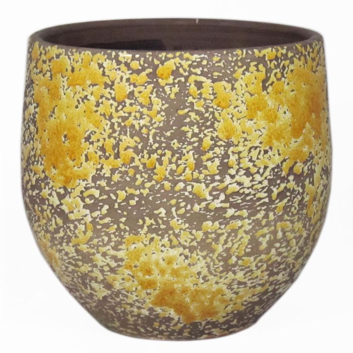 Rustikaler Keramiktopf TSCHIL, Farbverlauf, ockergelb-braun, 28cm, Ø28cm