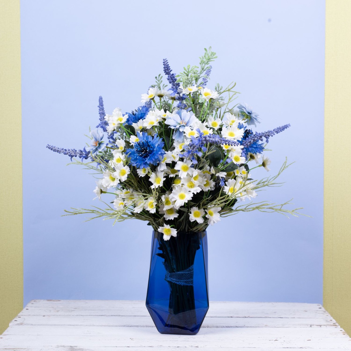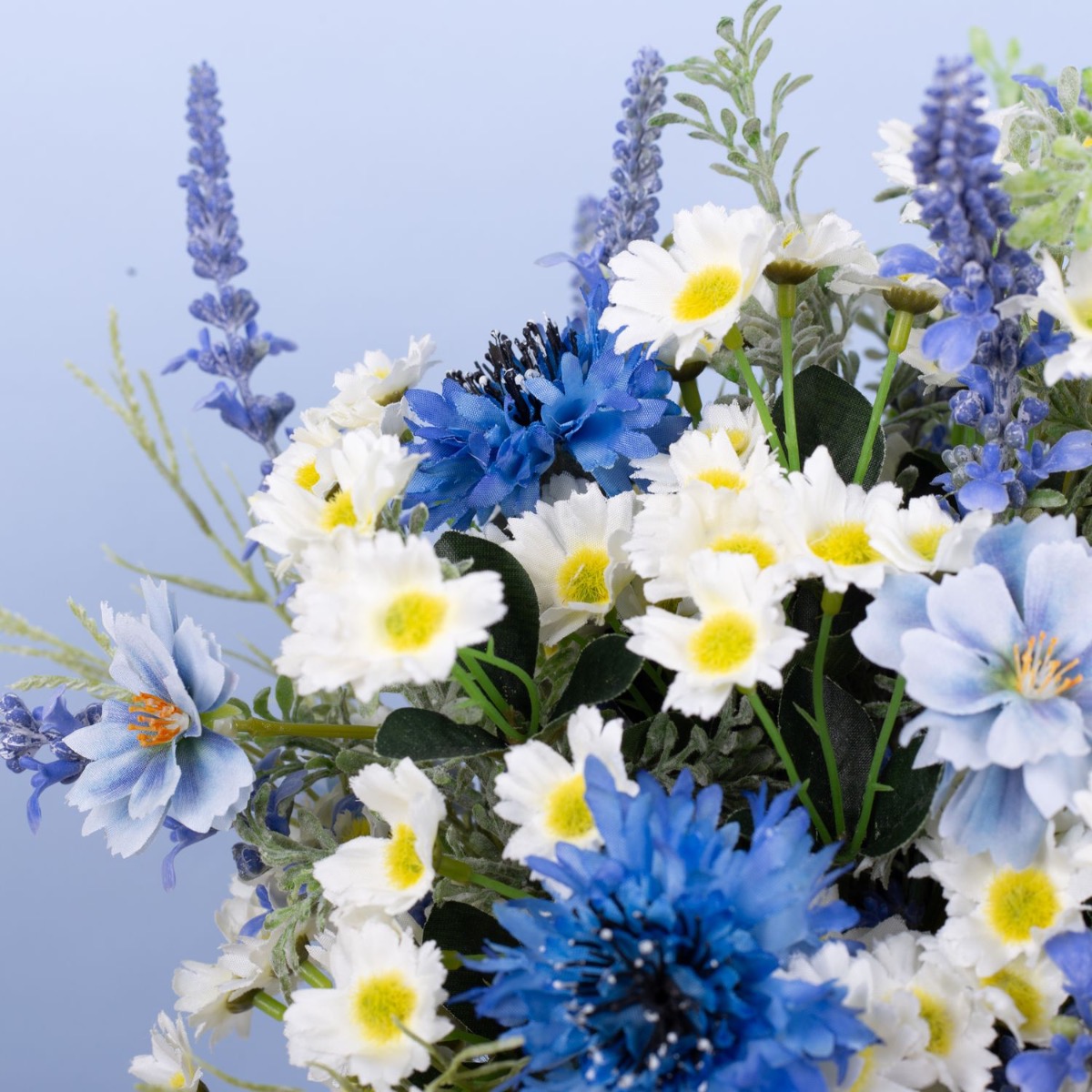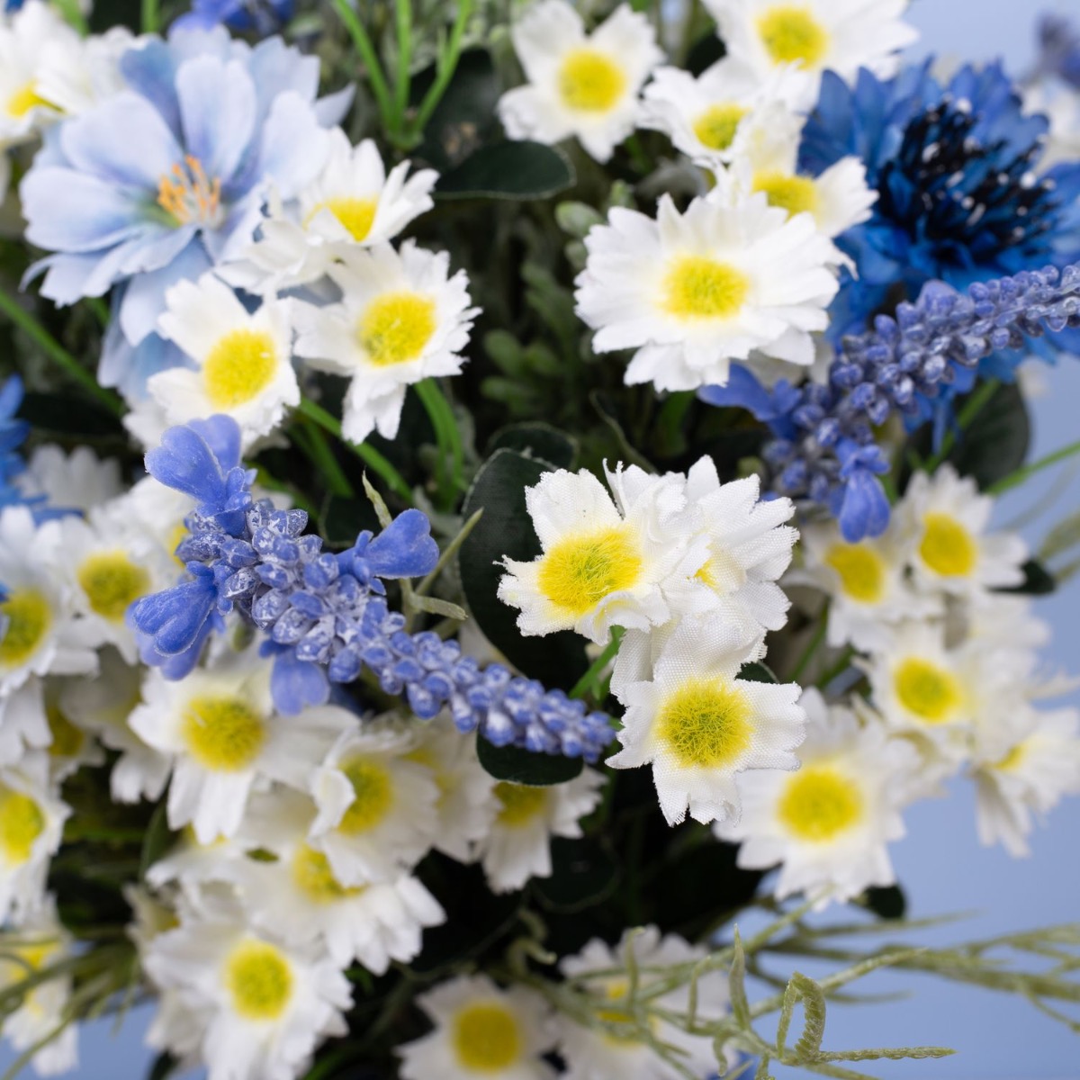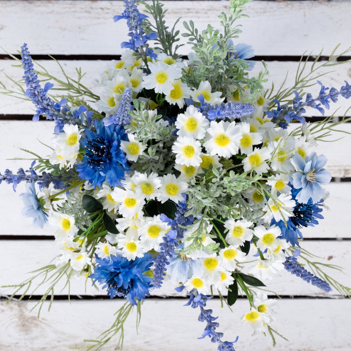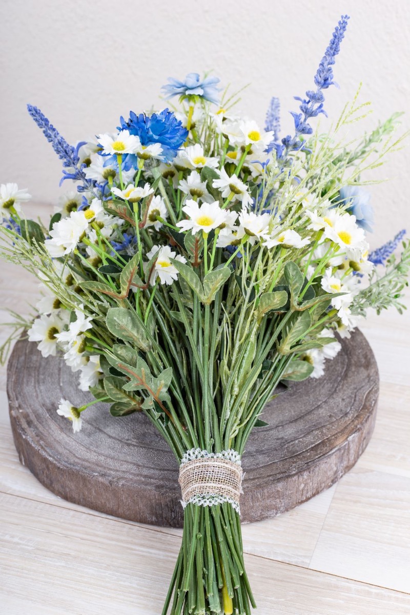 Blau und Weiß! So sieht ein bayrischer Blumenstrauß aus. Dieser hier wurde von dem Brautstrauß einer Mitarbeiterin von uns inspiriert. Leuchtend blaue Kornblumen, zarte Gänseblümchen und Lavendel zieren diesen außergewöhnlichen Brautstrauß und zaubern einen Hauch Romantik in das Fest. Der Lavendel steht hier für die Reinheit des Herzens. Die Gänseblümchen für die wahre Liebe und die Kornblumen deuten die positive Zukunft an. Ein braunes Juteband mit weißer Spitze unterstreicht den ländlichen Look. Wir freuen uns alle für Dich liebe Anna und hoffen, Du hattest einen wundervollen Tag! Shop the Look!