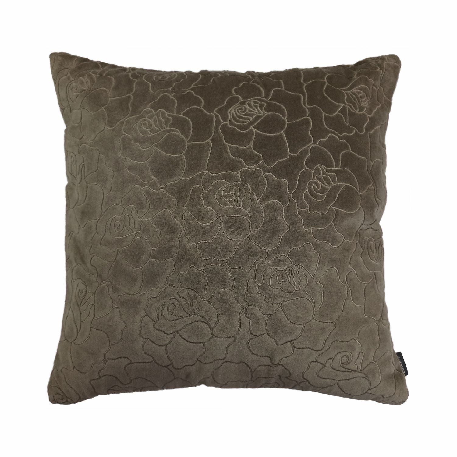 Das Deko Kissen ALAIA aus weichem Samt mit eingewebten Rosenmuster begeistert und ist ein romantischer Blickfang auf Ihrem Sofa.