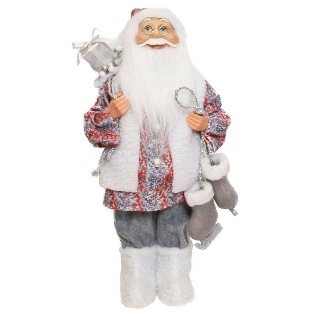 Santa Claus Figur ABENZIO, Schlittschuhe, Geschenkesack, weiß-grau-rot, 22x14x45cm