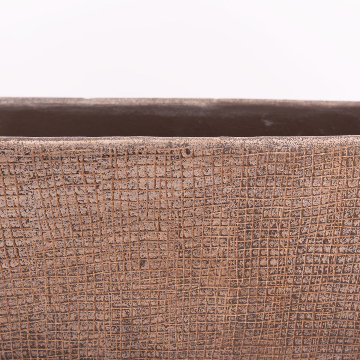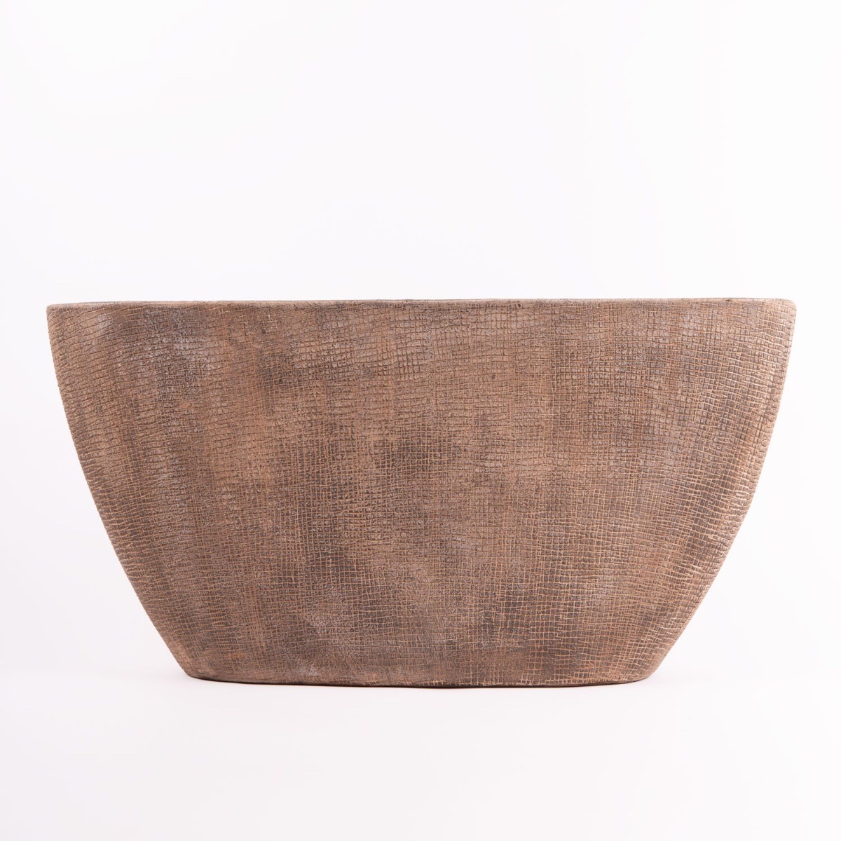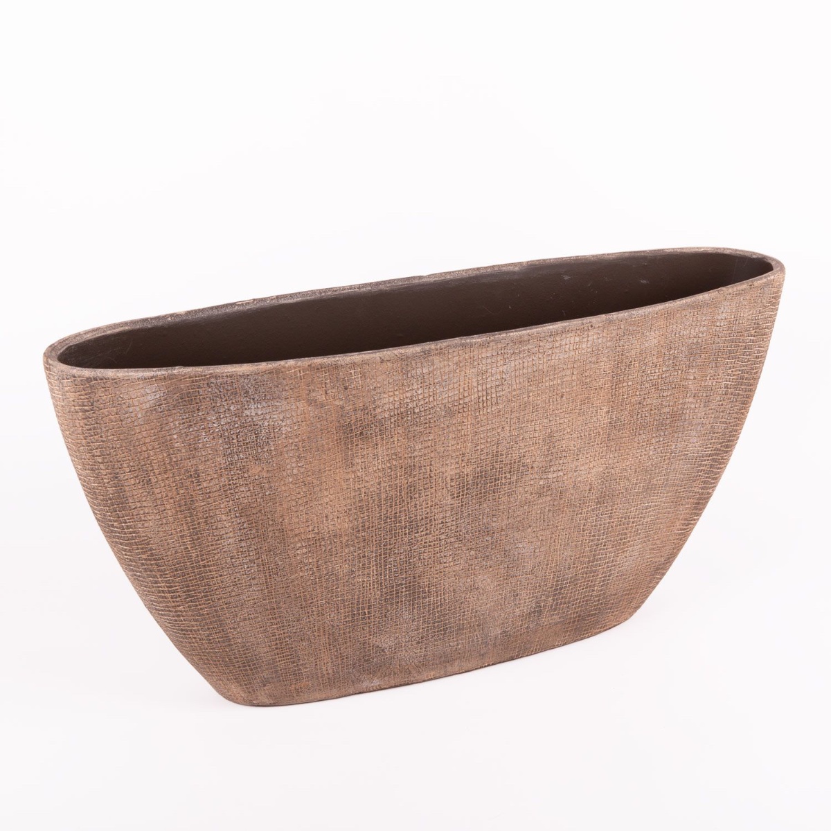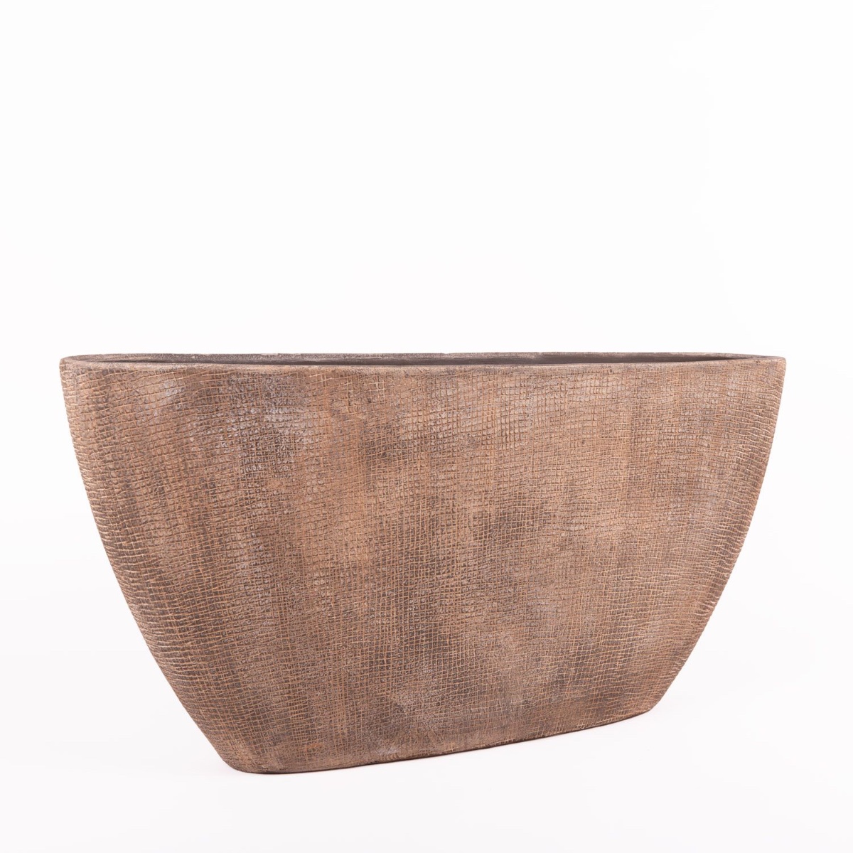 Blumenschale AGAPE aus Keramik in Farbe betongrau mit einer Länge von ca. 73 cm und einer Höhe von ca. 36 cm.