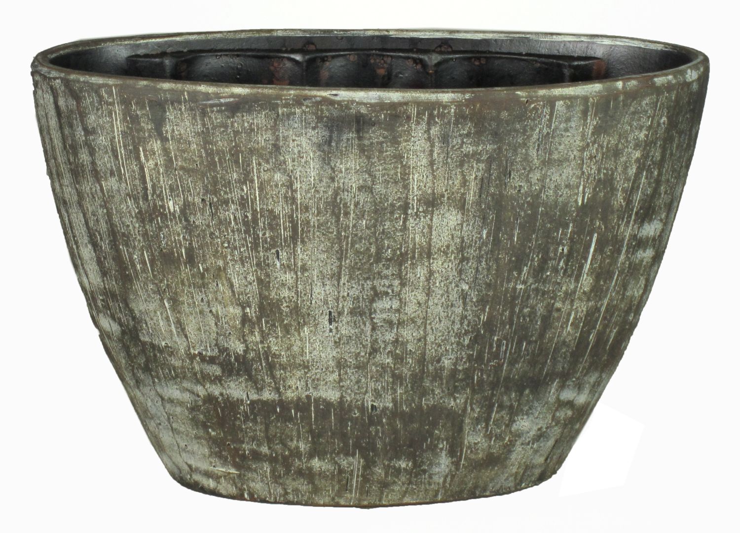 Pflanztopf RAKSCHA aus Keramik in Farbe braun-olivgrün mit einer Länge von ca. 32 cm und einer Höhe von ca. 22,5 cm.