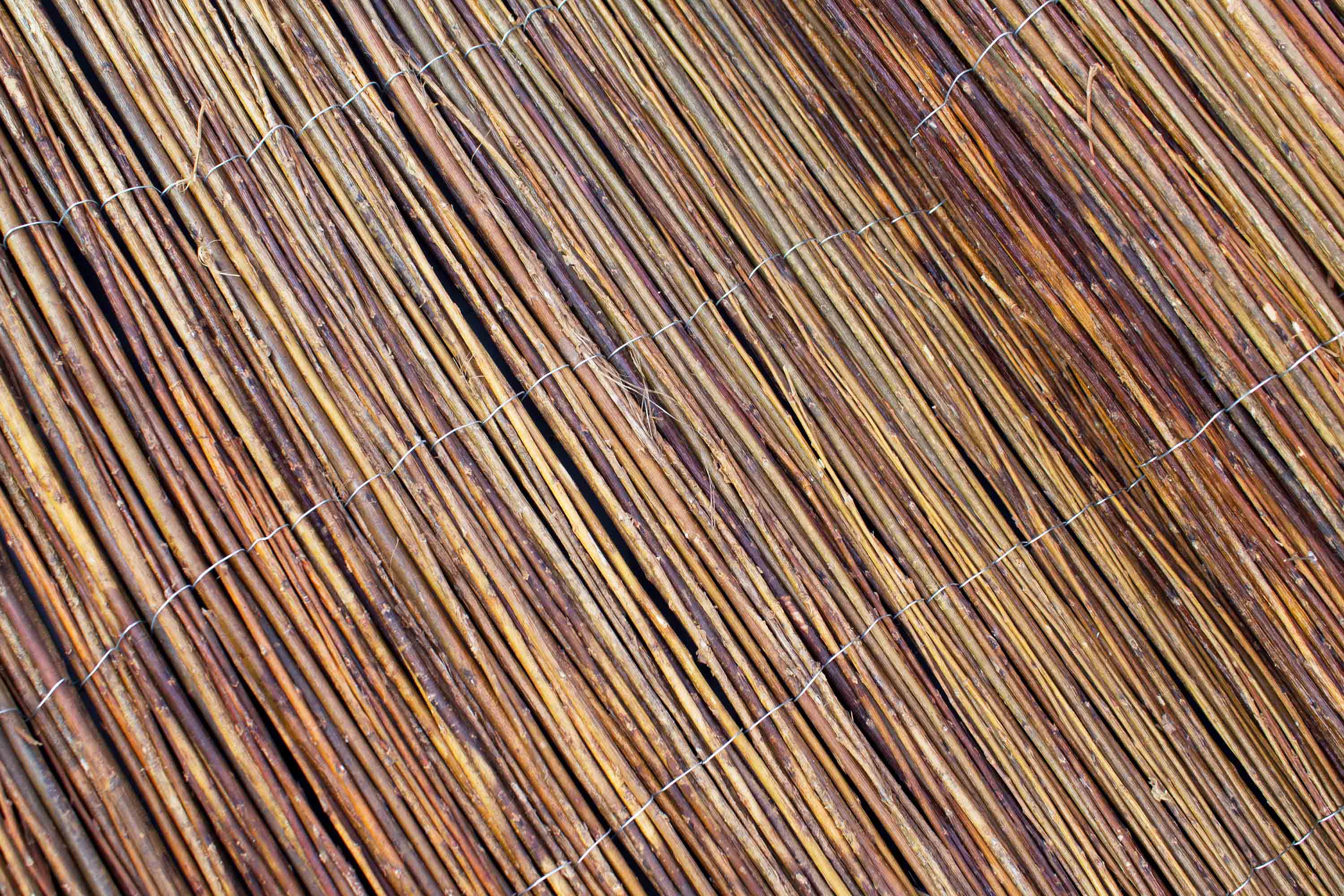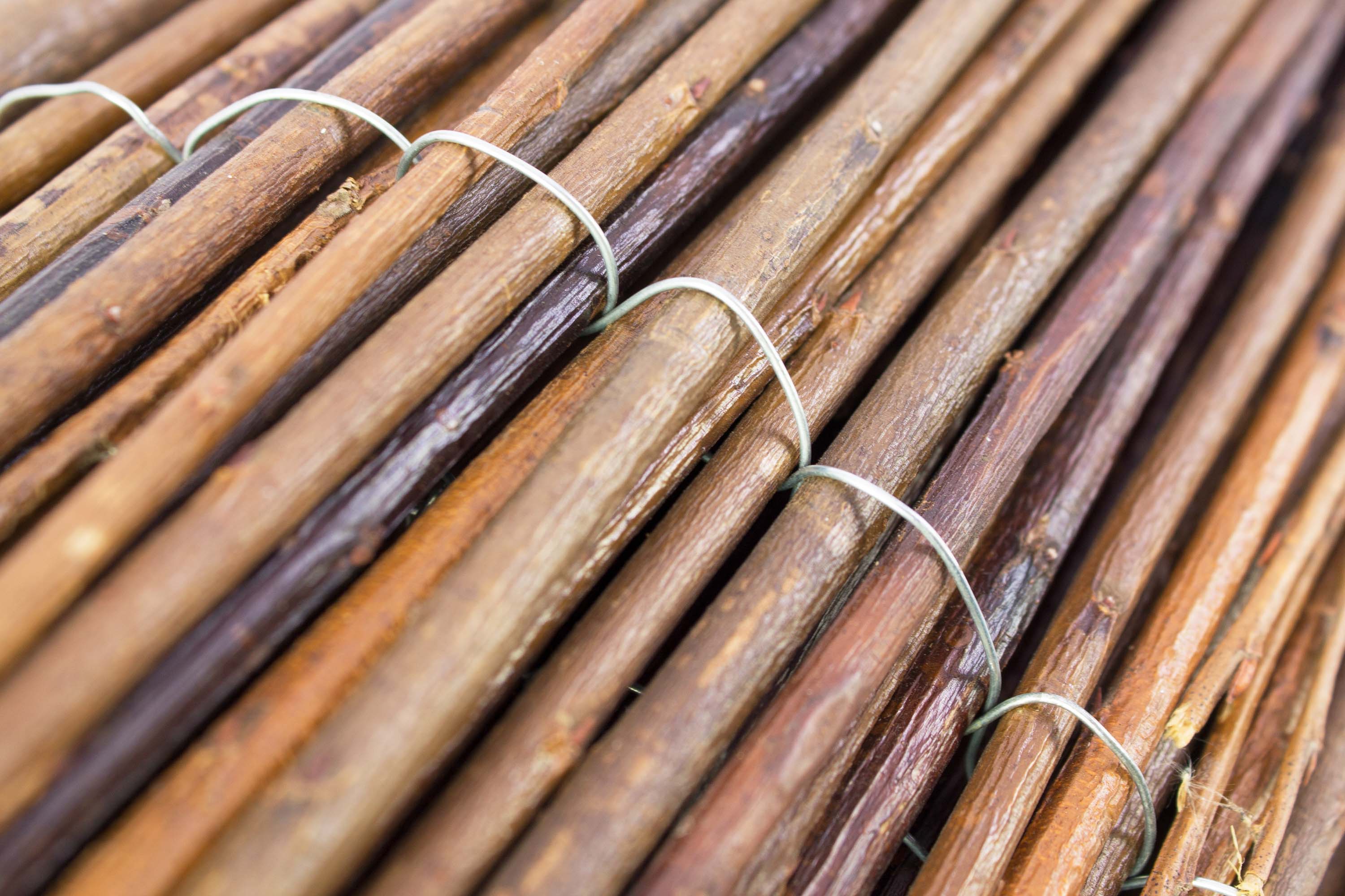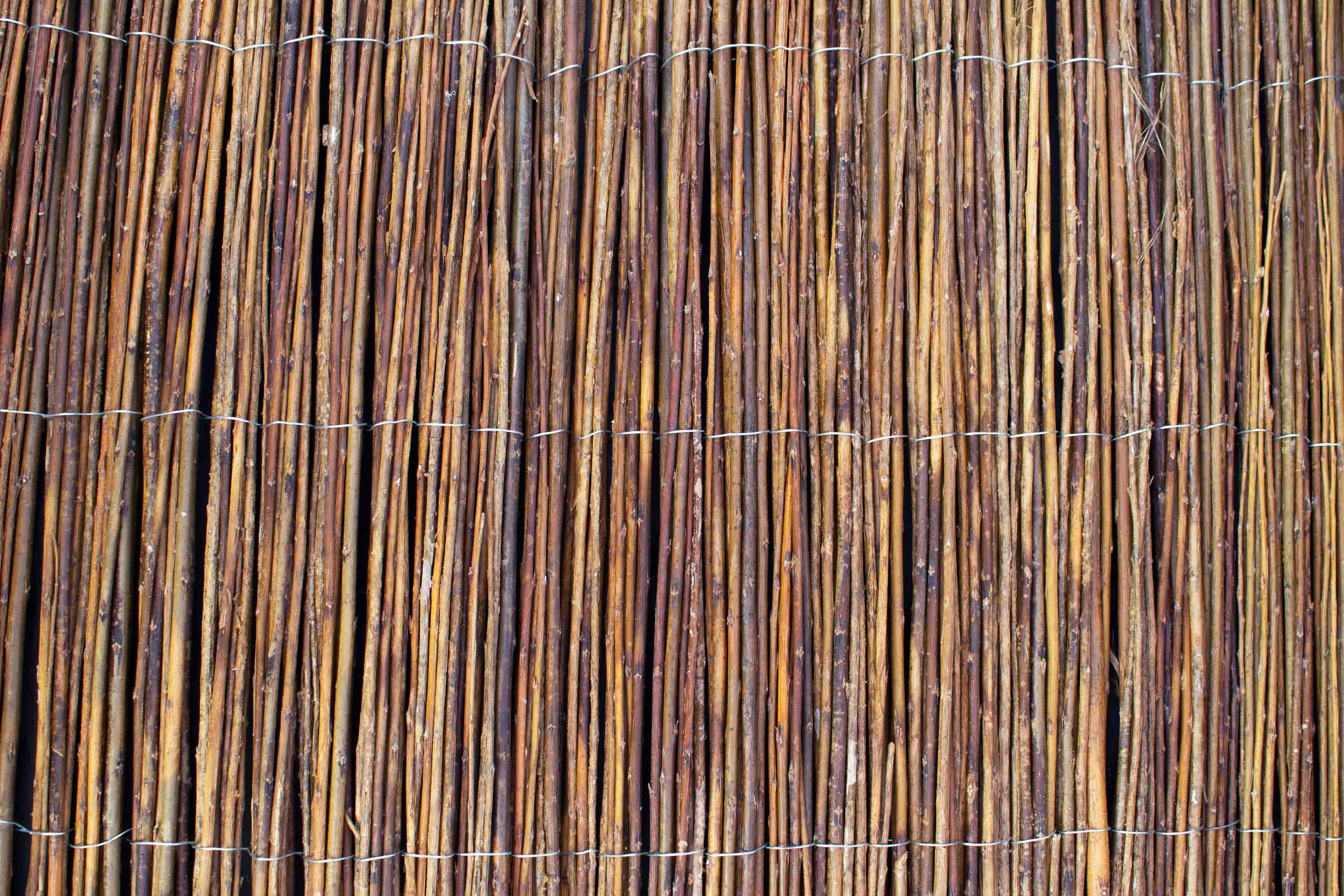 - Weidenwand bestehend aus verschieden dicken Weideästen, die mit galvanisiertem Draht fest miteinander verbunden sind