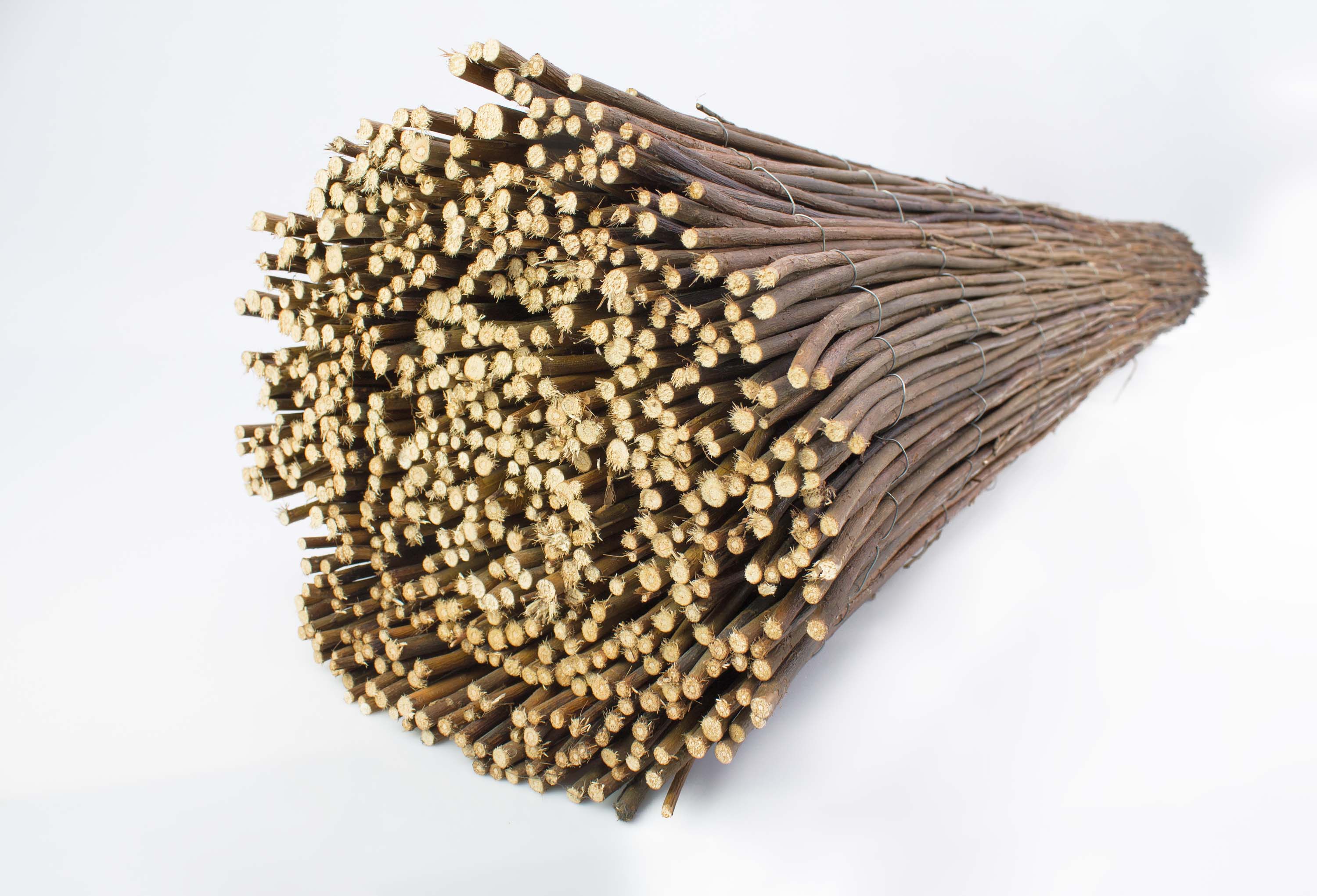 - Weidenwand bestehend aus verschieden dicken Weideästen, die mit galvanisiertem Draht fest miteinander verbunden sind