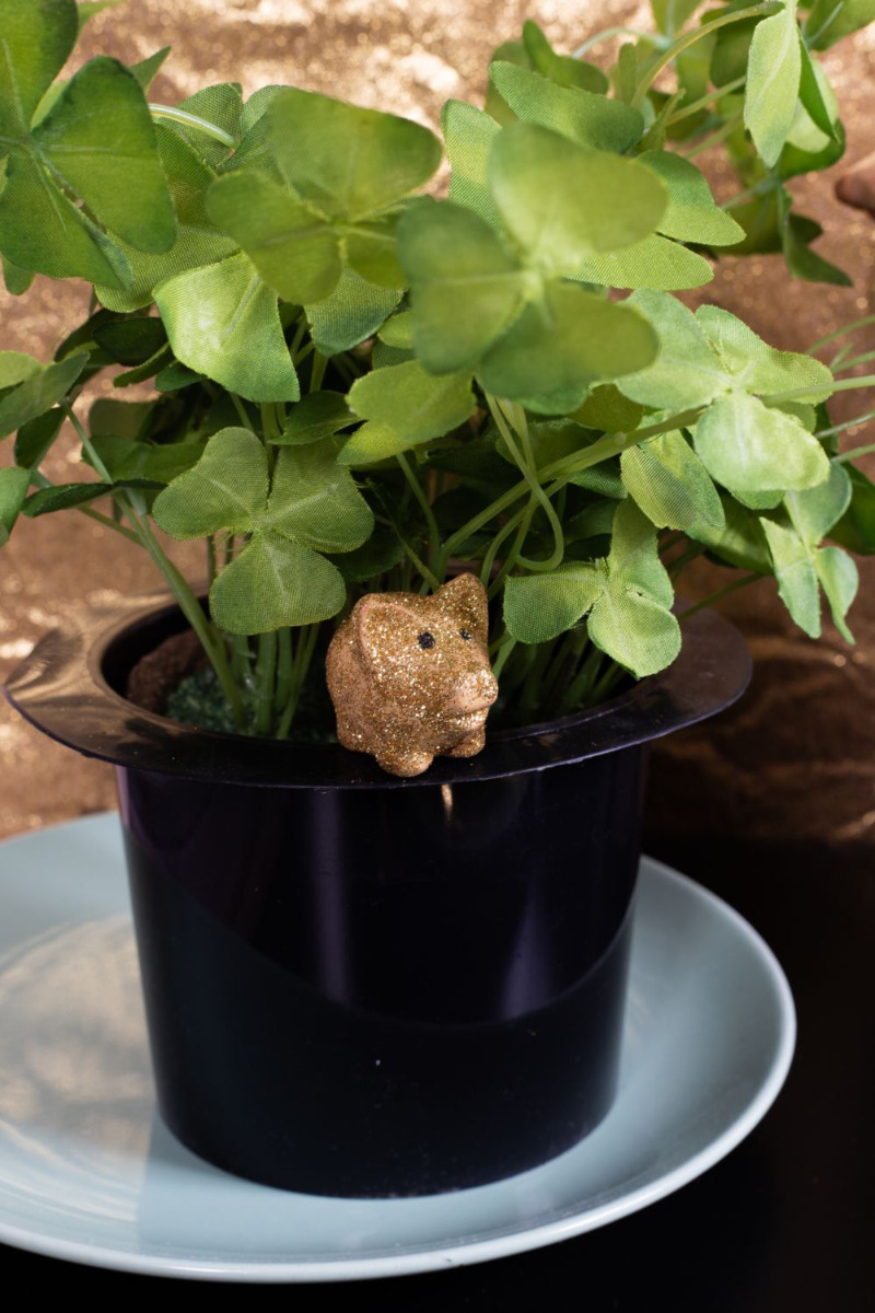 Gestaltungstipp: Stellen Sie den Klee in den Topf, und füllen ihn dann mit Granulat Ihrer Wahl auf.