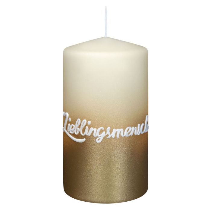Spruchkerze JARDENA, Lieblingsmensch, bisquit-gold, 13cm, Ø7cm, 52h