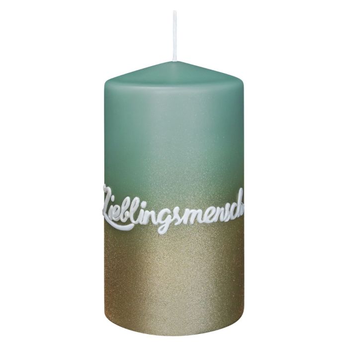 Spruchkerze JARDENA, Lieblingsmensch, reseda-gold, 13cm, Ø7cm, 52h