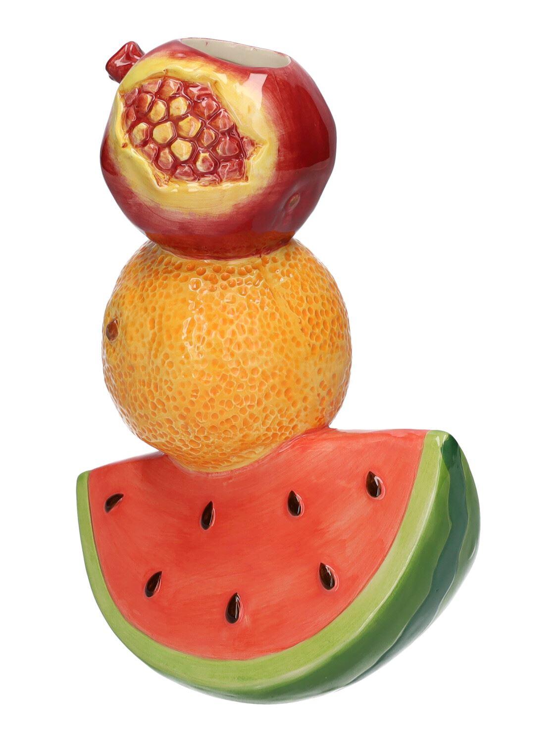 Stielblumenvase Granatapfel Orange Wassermelone TILLAS aus Keramik, rot-gelb-grün, 14,8x8x21cm