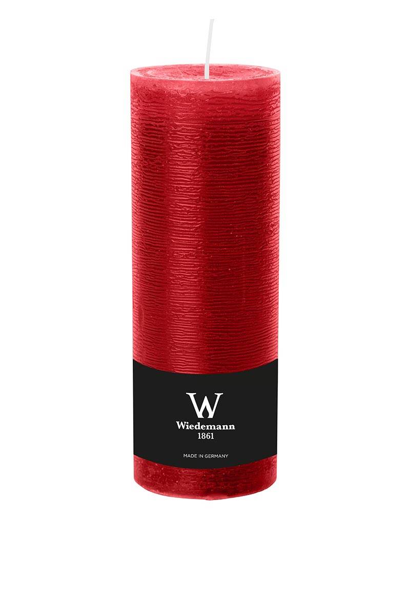 Stumpenkerze AURORA, rubinrot, 19cm, Ø6,8cm, 85h - Made in Germany