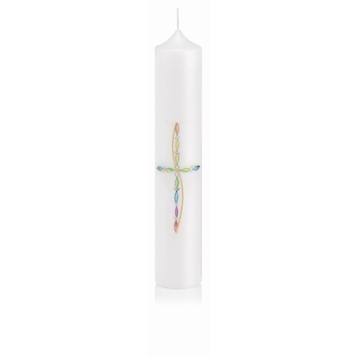 Taufkerze Kommunionkerze Konfirmationskerze ABUNDIUS, verziert, weiß-bunt, 26,5cm, Ø5cm - Made in Germany