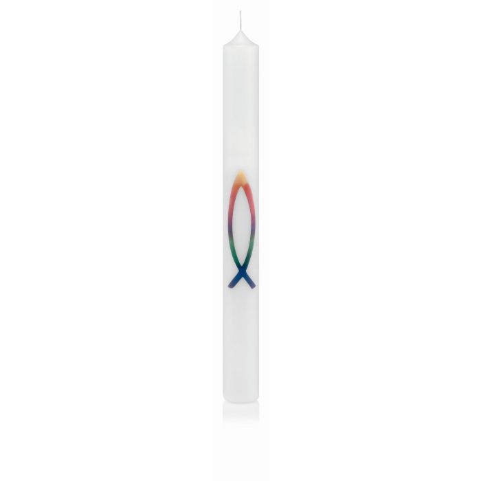 Taufkerze Kommunionkerze Konfirmationskerze HENRIEKE, verziert, weiß-bunt, 40cm, Ø4cm - Made in Germany