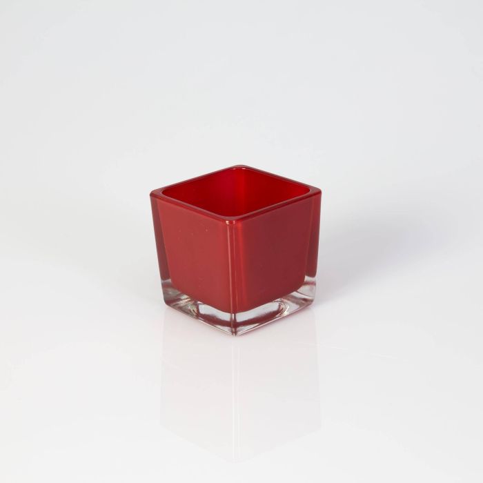 Teelichthalter KIM EARTH aus Glas, rot, 6x6x6cm