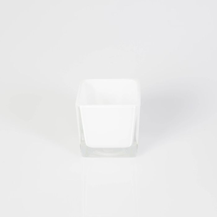Teelichthalter KIM EARTH aus Glas, weiß, 6x6x6cm