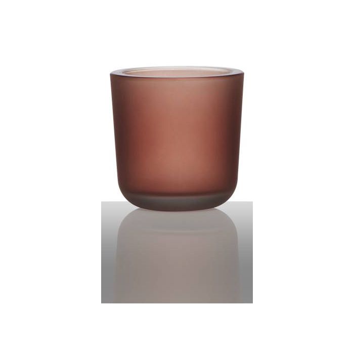 Das Kerzenhalter/Teelichtglas NICK in Farbe burgunderrot mattiert mit den Maßen 7,5cm; Ø7,5cm von INNA Glas bietet Platz für ein Teelicht und passt ideal für Ihre individuelle Dekorationsidee