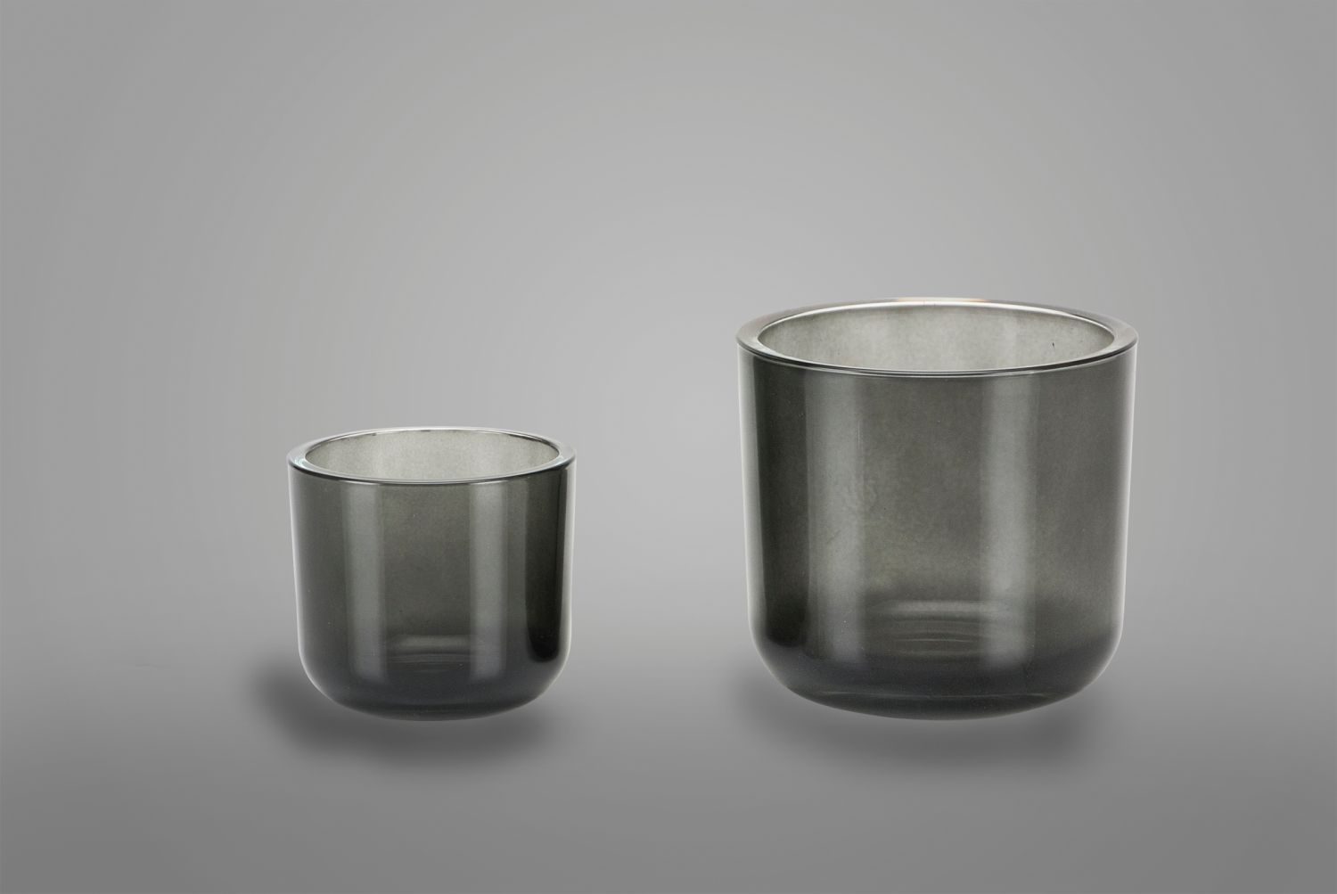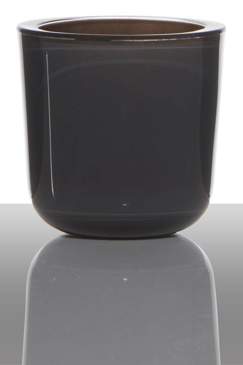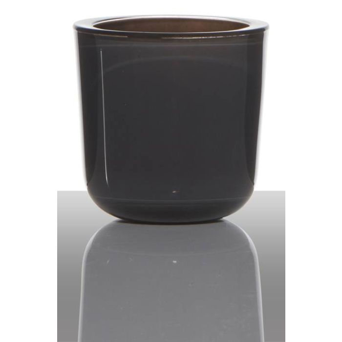 Teelichthalter NICK aus Glas, dunkelgrau-transparent, 7,5cm, Ø7,5cm
