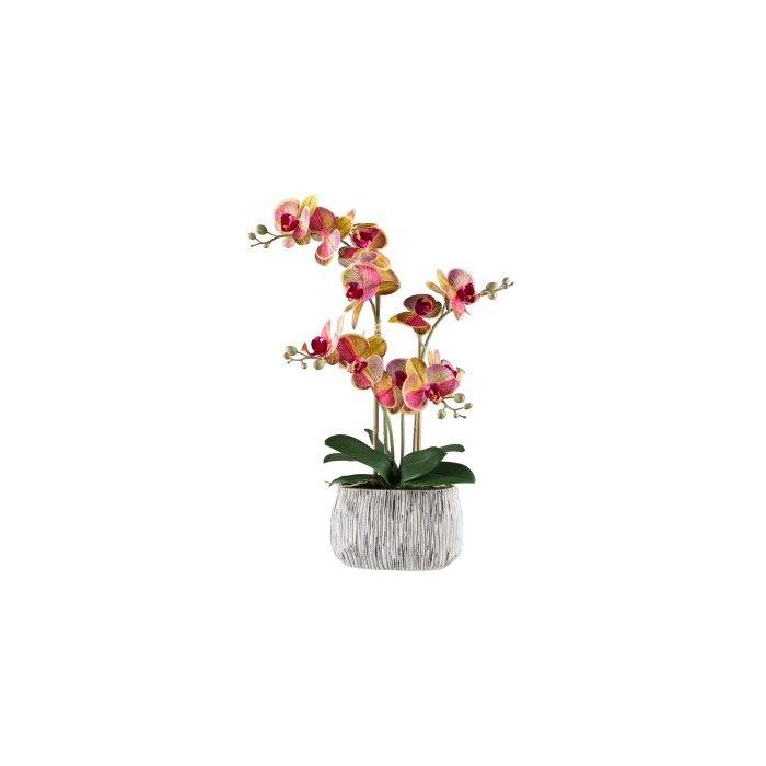 Textil Phalaenopsis Orchidee BLORVEN, Zementschale, Wurzeln, gelb-pink, 55cm