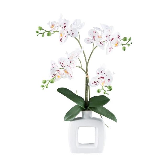 Textil Phalaenopsis Orchidee DRUKLON, Keramikvase, Wurzeln, weiß-rot, 40cm