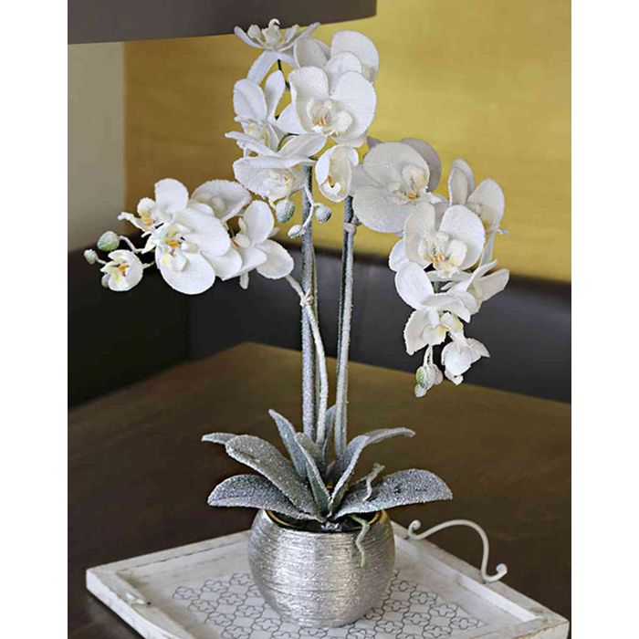 Textil Phalaenopsis Orchidee KAREN, Dekotopf, gefroren, weiß, 60cm