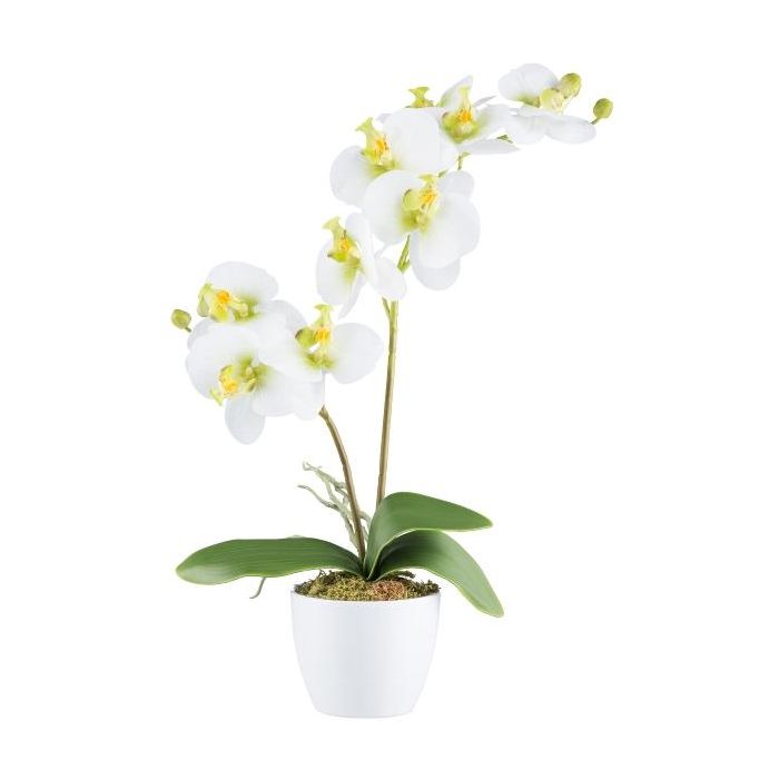Textil Phalaenopsis Orchidee KRUZBER, Keramiktopf, Wurzeln, weiß-grün, 55cm