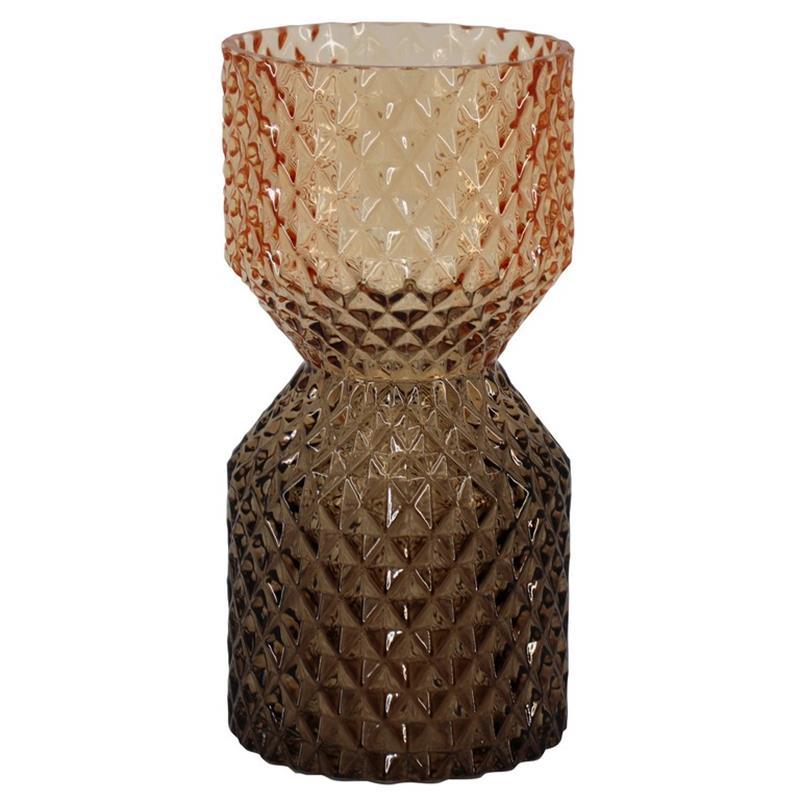 Tischvase Glas ANDREI mit Rauten, amber-braun-klar, 20cm, Ø9,8cm