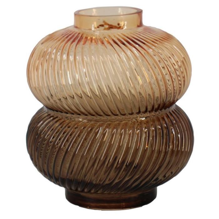 Tischvase Glas KORNELIA mit Rillen, amber-braun-klar, 16,3cm, Ø14,7cm