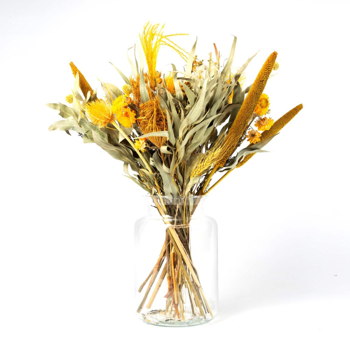 Trockenblumen Strauß MARUKA mit Rispen, gelb-grün, 45cm, Ø20cm