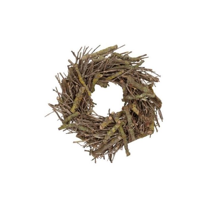 - Der Kranz besteht aus dünnen Weidenzweigen die zu einem Kranz gebunden sind, dickere kurze Ästchen mit Flechten sind außen angebracht