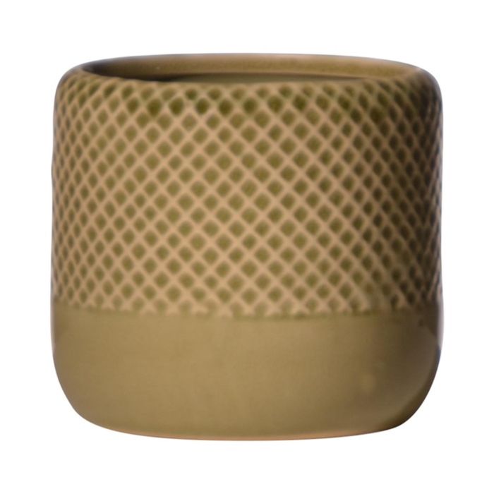 Übertopf DANYLO aus Keramik, Rautenmuster, grün-braun, 10,5cm, Ø12cm
