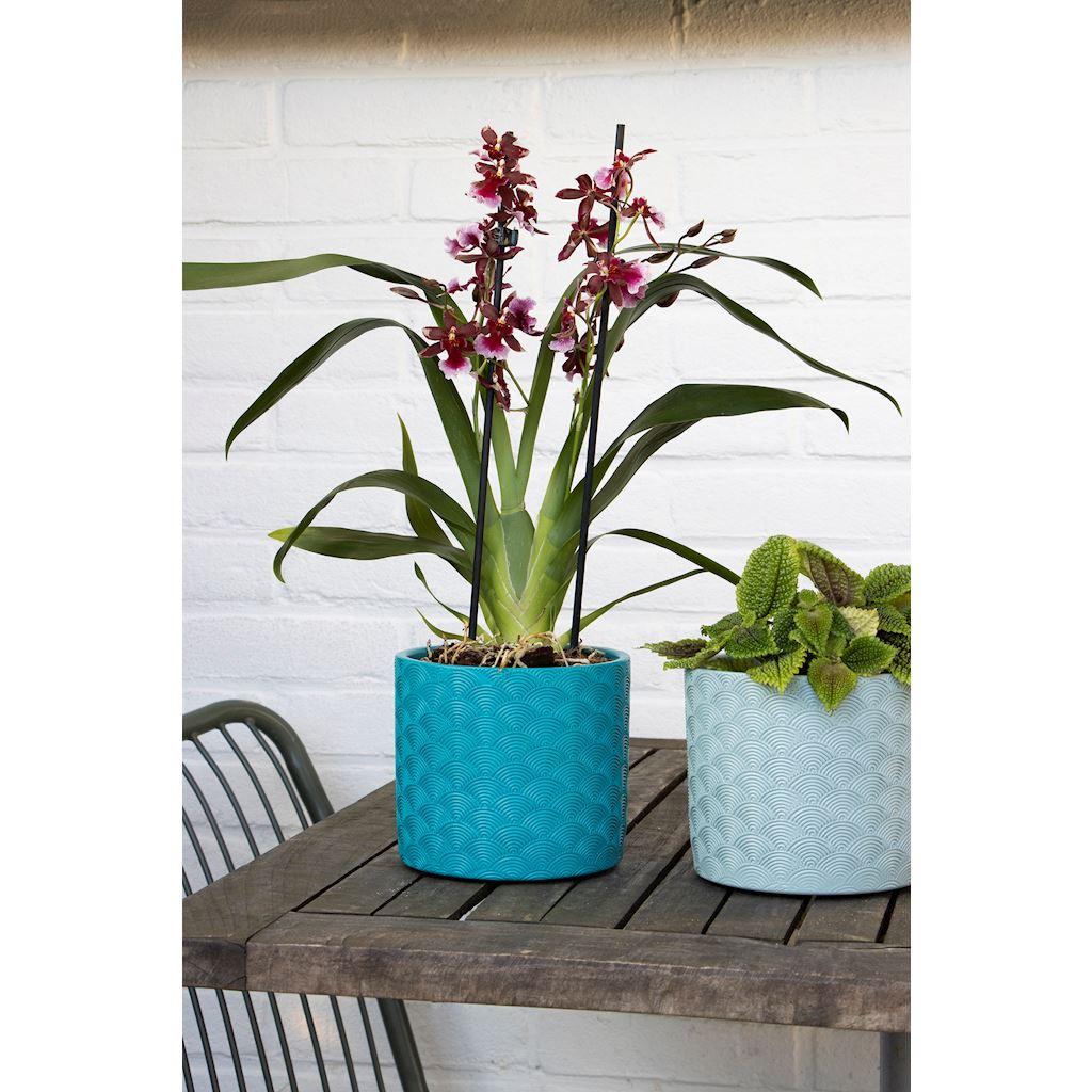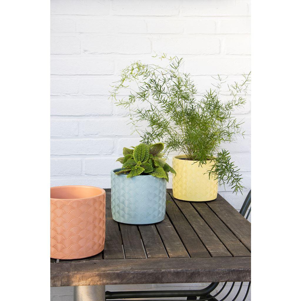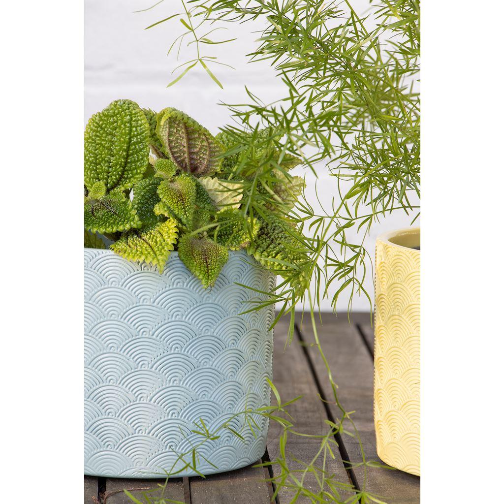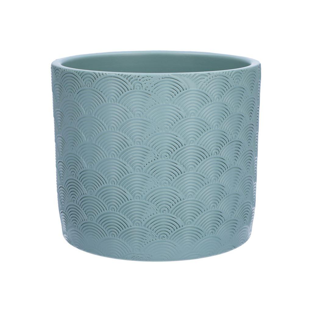 Übertopf FERDINANTA mit Muster, Keramik, hellblau-matt, 12,3cm, Ø13,5cm
