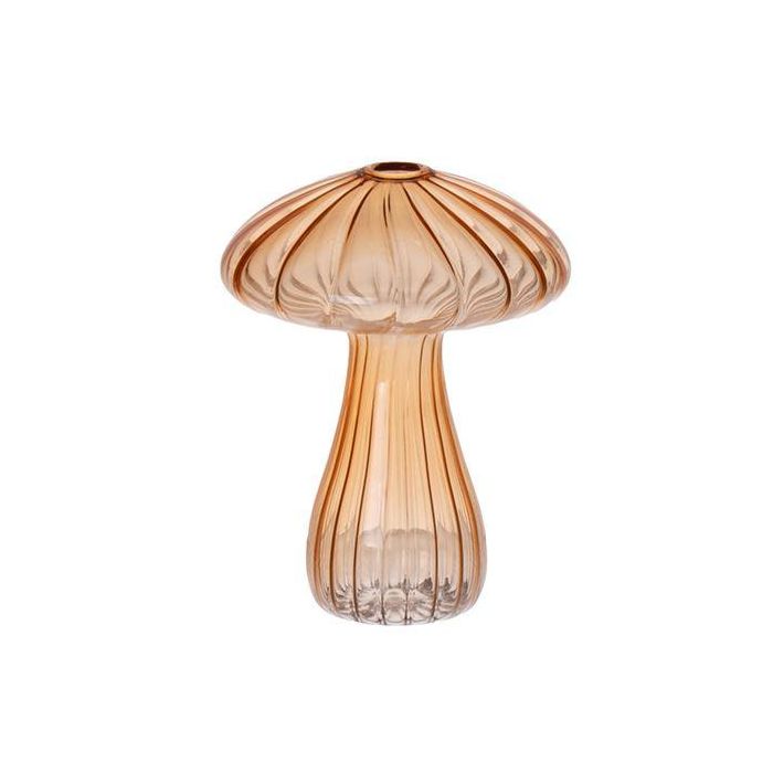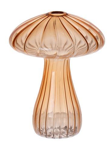 Vase aus Glas PULCHERIA, Pilz Form, Rillen, amber-klar, 13cm Ø10cm