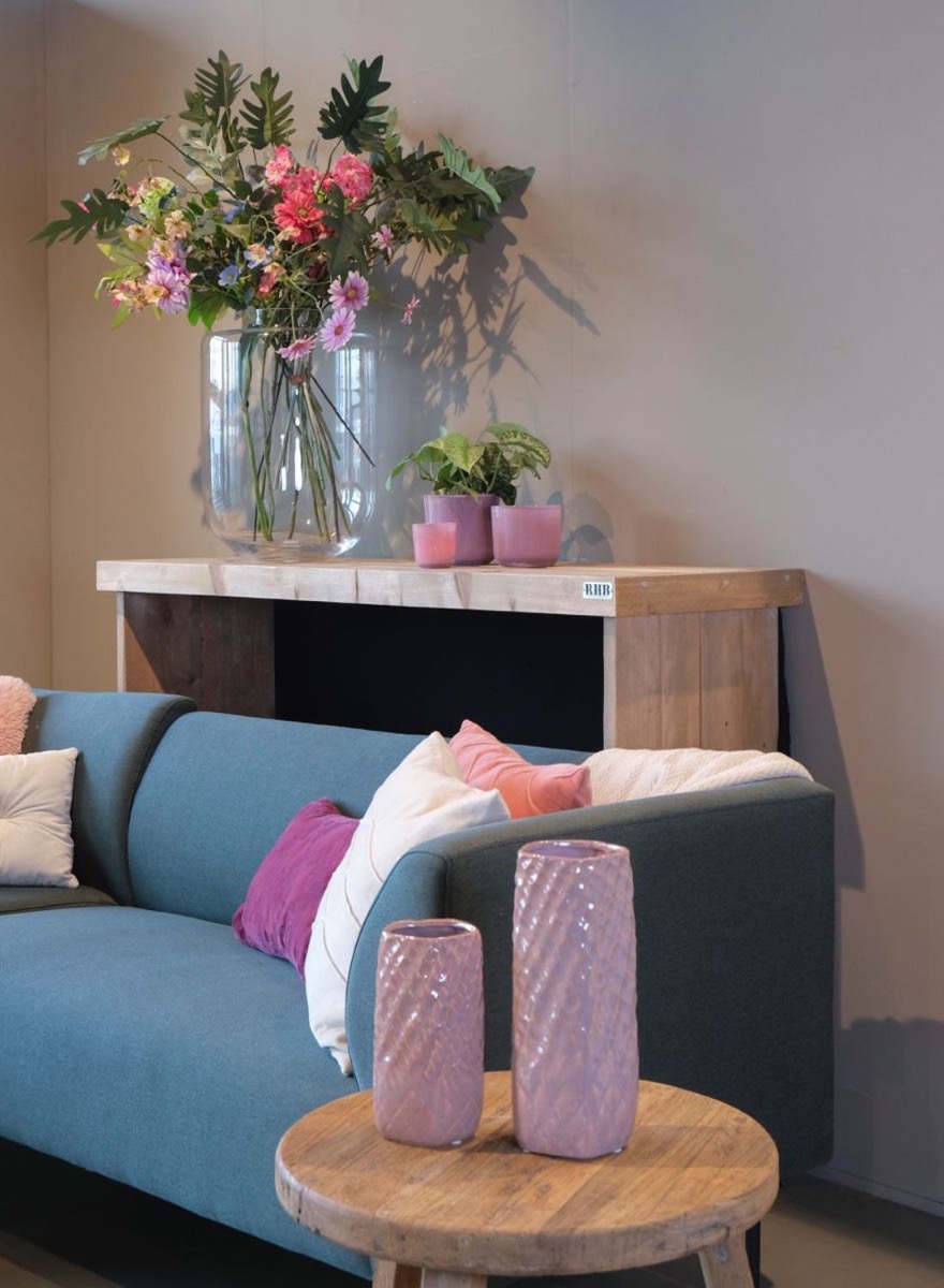 - Dekorativ mit echten oder künstlichen Stielblumen, Zweigen oder Gräsern