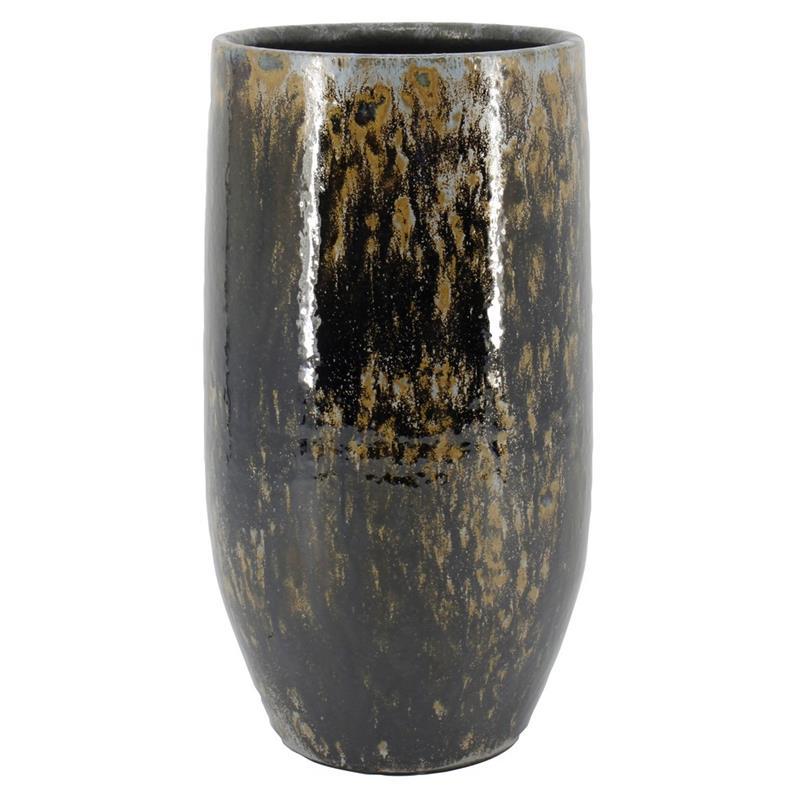 Vase ELIEL aus Keramik, gesprenkelt, braun-blau, 45cm, Ø20cm