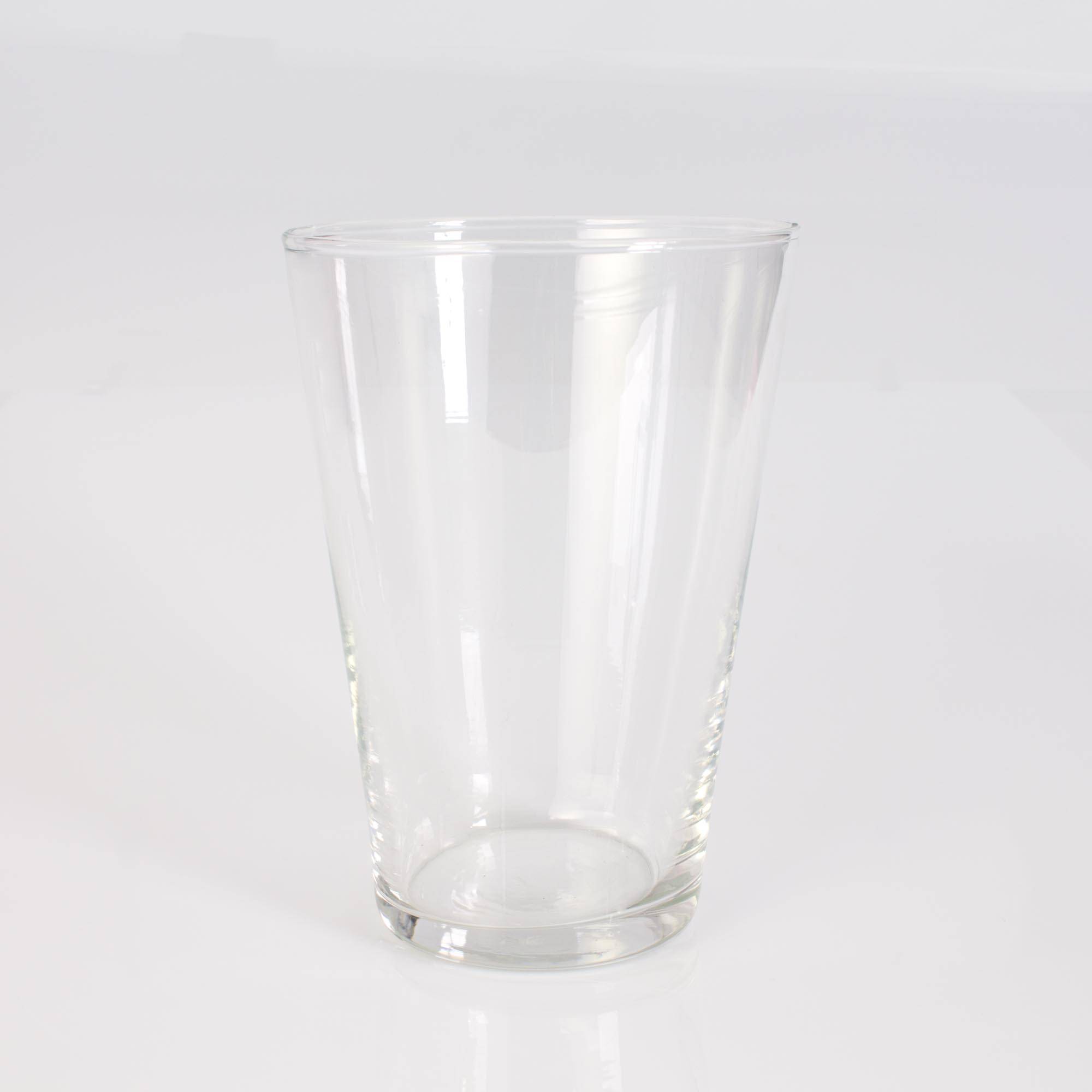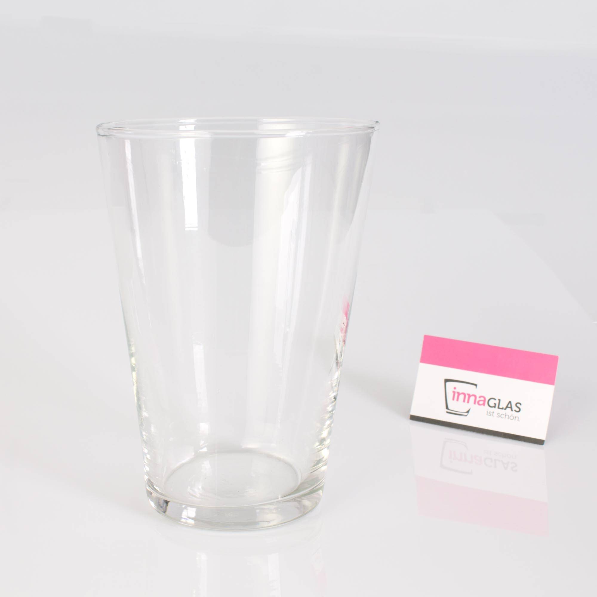 Konische Vase JENNY EARTH mit 3 mm Glasstärke in Farbe klar von INNA Glas. Die schöne Blumenvase ist 19,5 cm hoch und hat oben einen Außendurchmesser von 14 cm.
