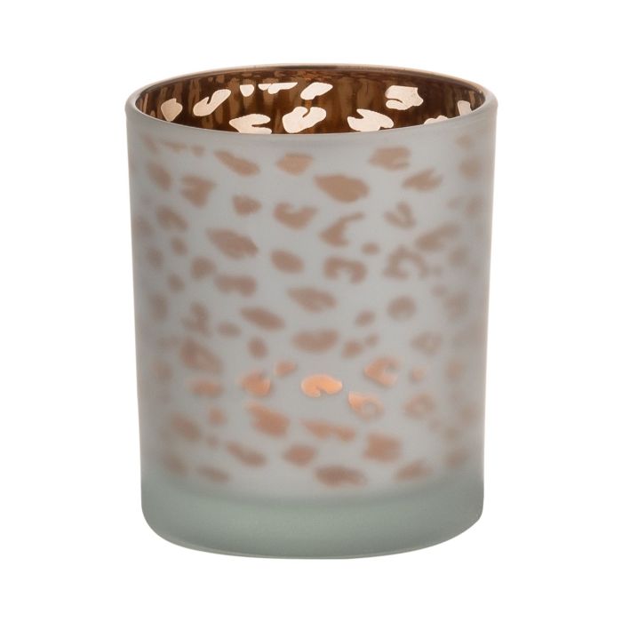 Votivglas SENGA, Leopardenmuster, matt-gold, 8cm, Ø7cm