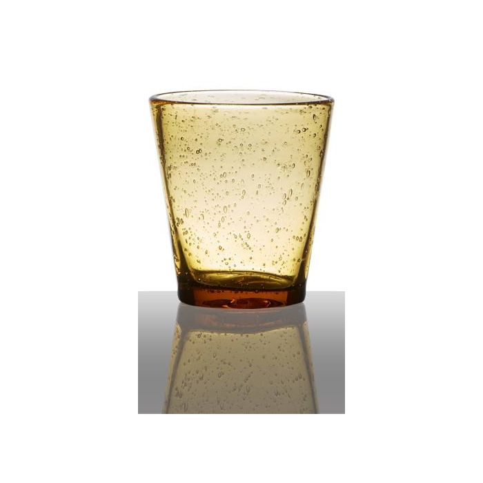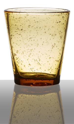 Votivkerzenhalter Glas HALEY mit Bläschen, gelb-orange, 9x9x10,5cm