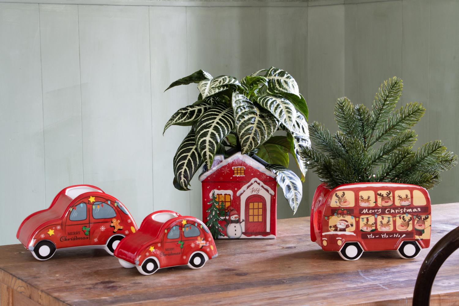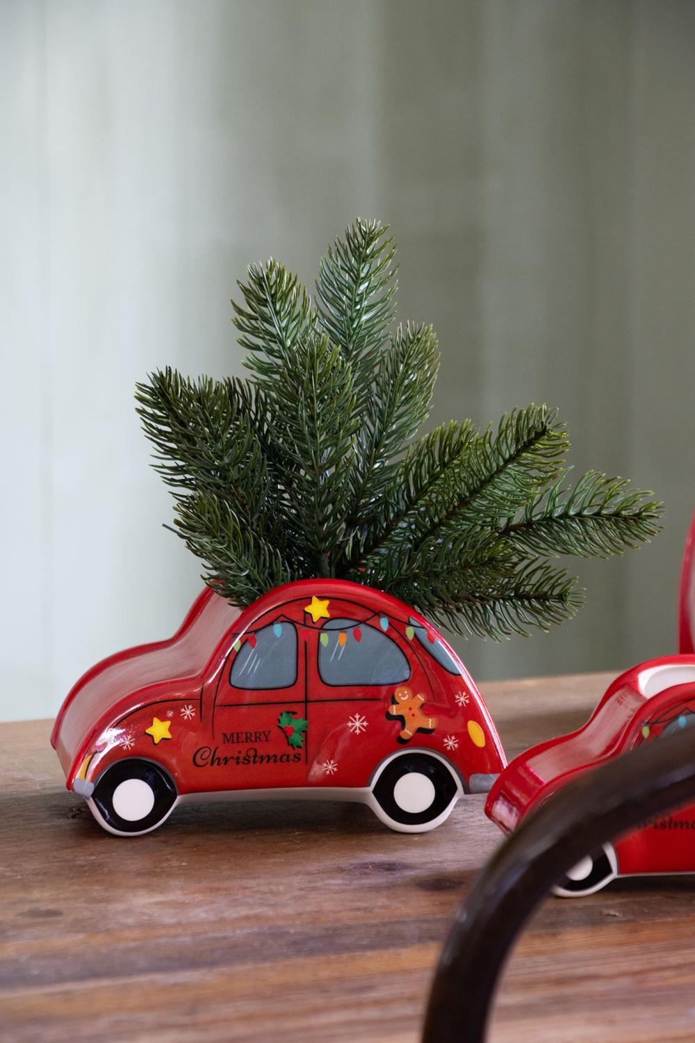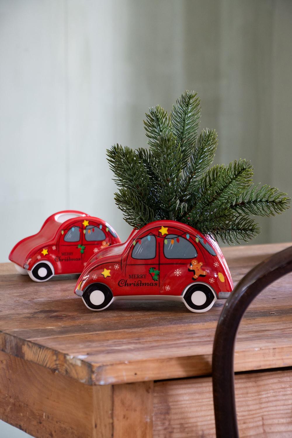 Weihnachtliches Auto Keramiktopf ARMAS, rot, 19x12x11cm